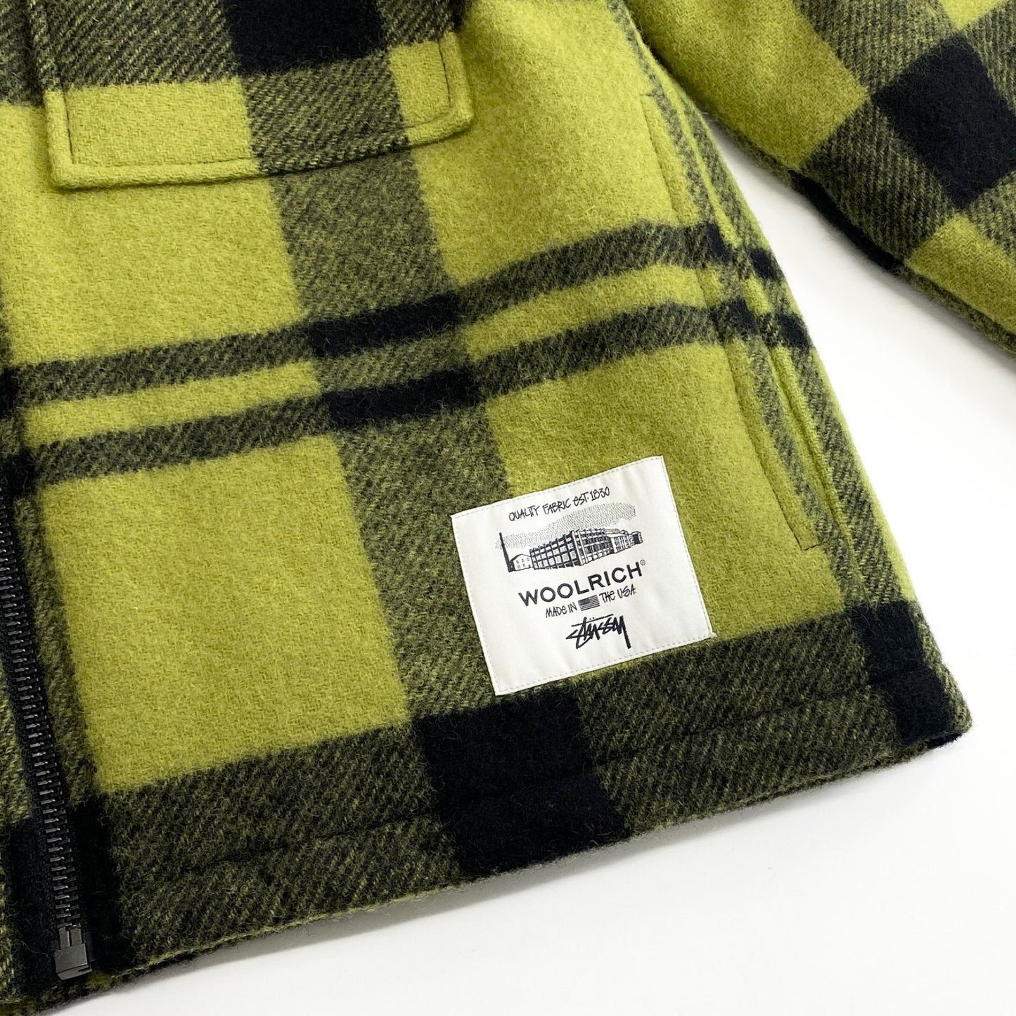 49k13《極美品》STUSSY × WOOLRICH ステューシー ウールリッチ コラボ Plaid Workshirt ウールジャケット ブルゾン USA(S) グリーン