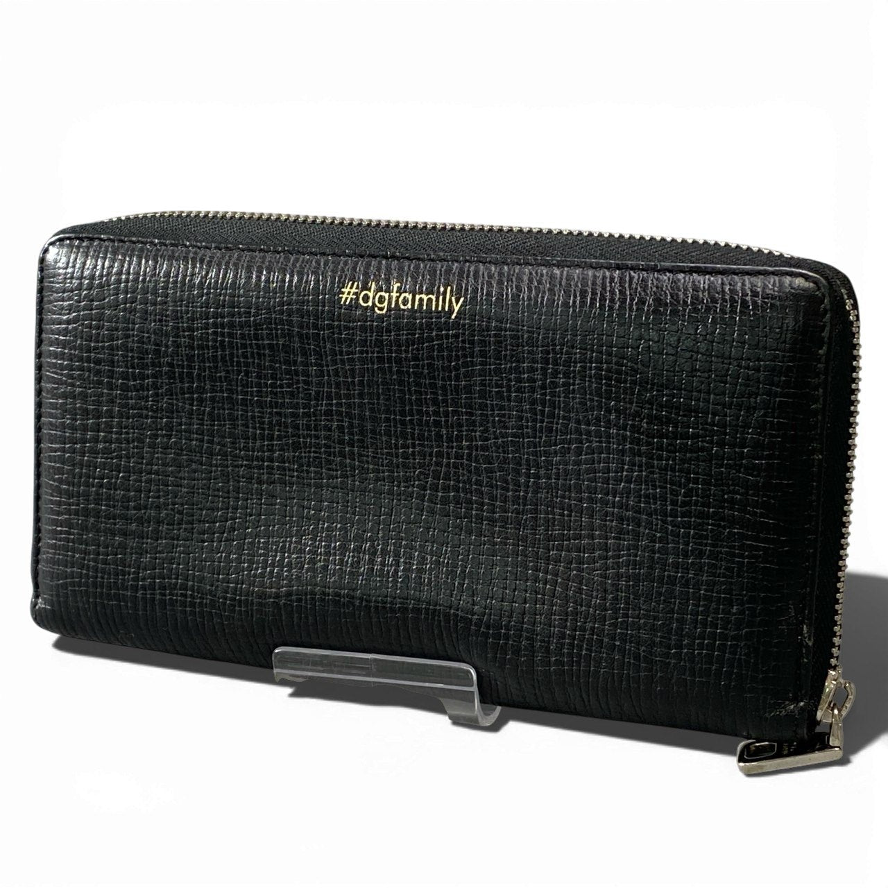 a5 DOLCE&GABBANA ドルチェアンドガッバーナ ラウンドファスナー 長財布 パッチ装飾 レザー 革 ブラック メンズ レディース ユニセックスk02i