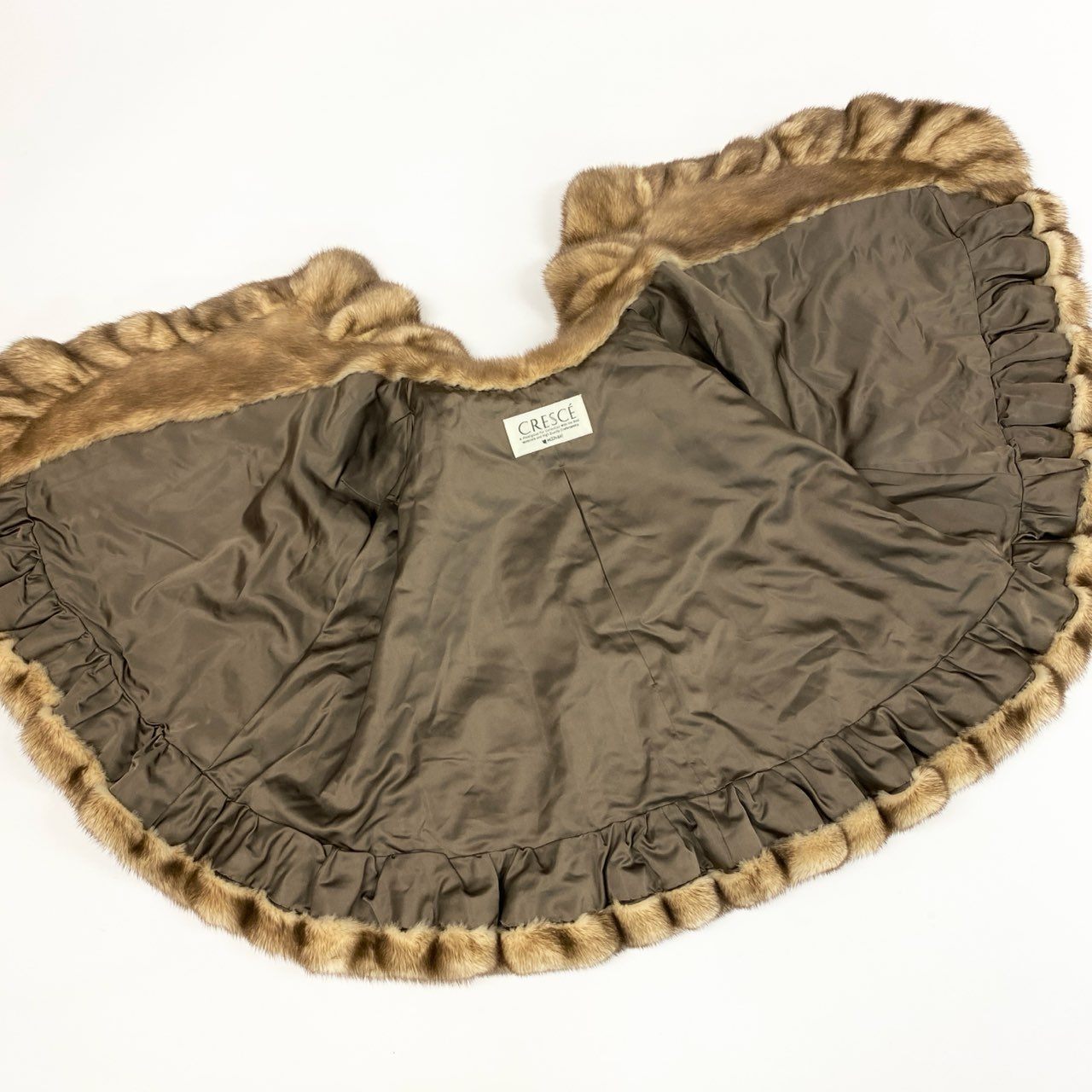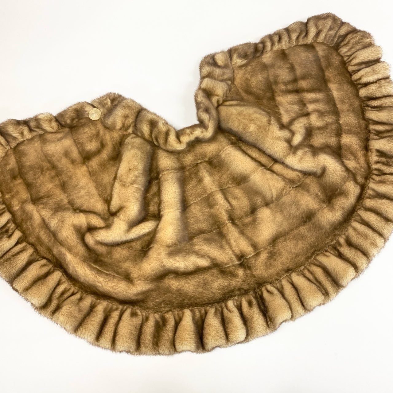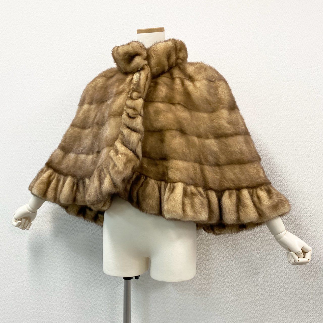 53k10《希少》 CRESCE ミンクファー フリルデザイン ケープ F 最高級本毛皮 金ボタン ポンチョ MINK FUR コートt18r
