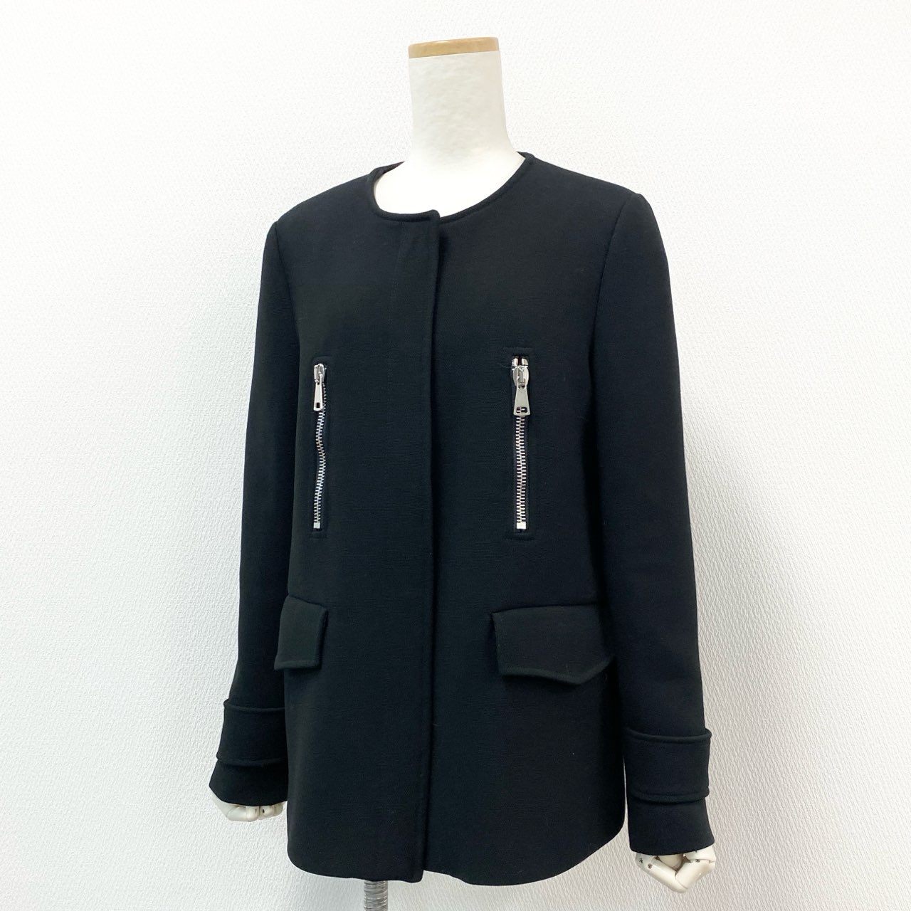 5d2 《美品》 ERMANNO SCERVINO エルマンノ シェルビーノ ベスト付 セパレート ノーカラージャケット 40 ブラック 2点セット イタリア製 レオパード柄