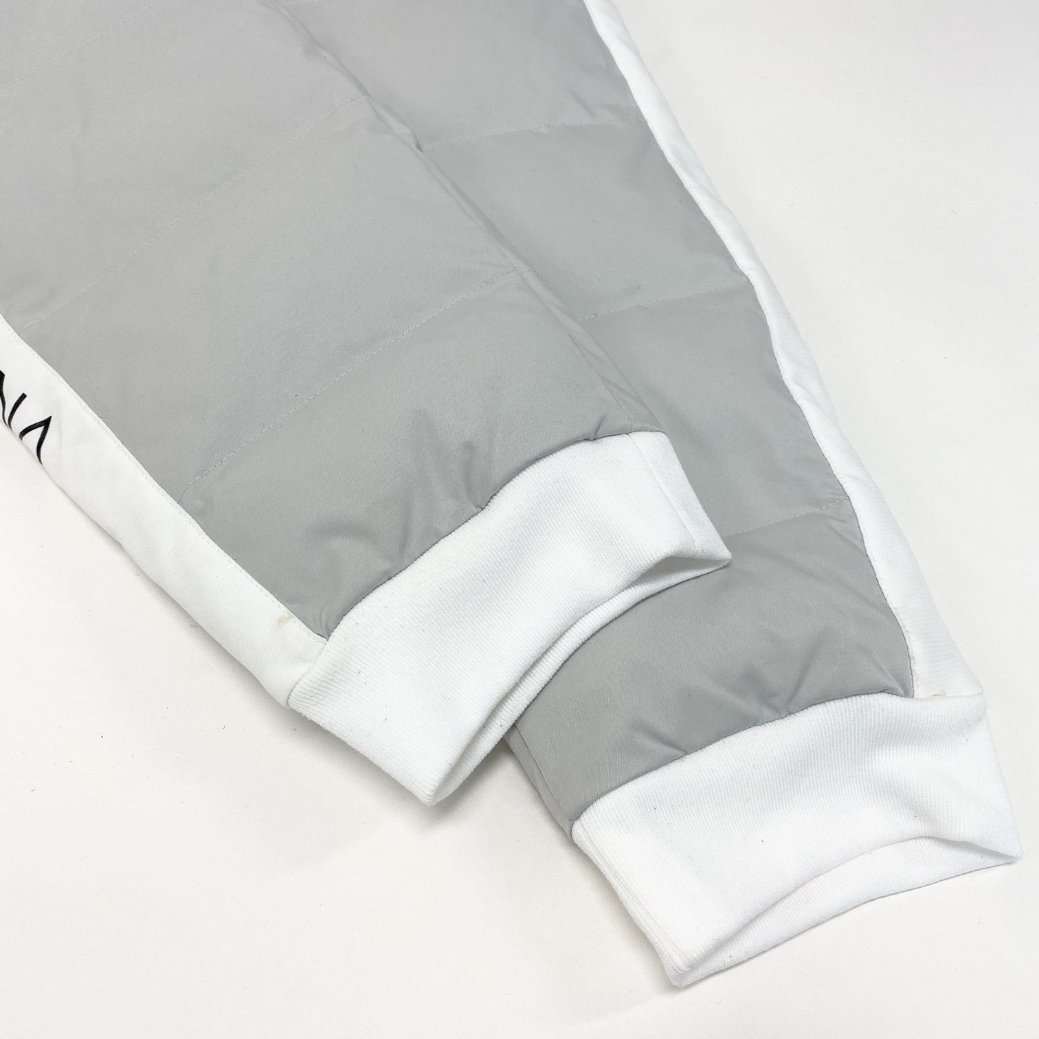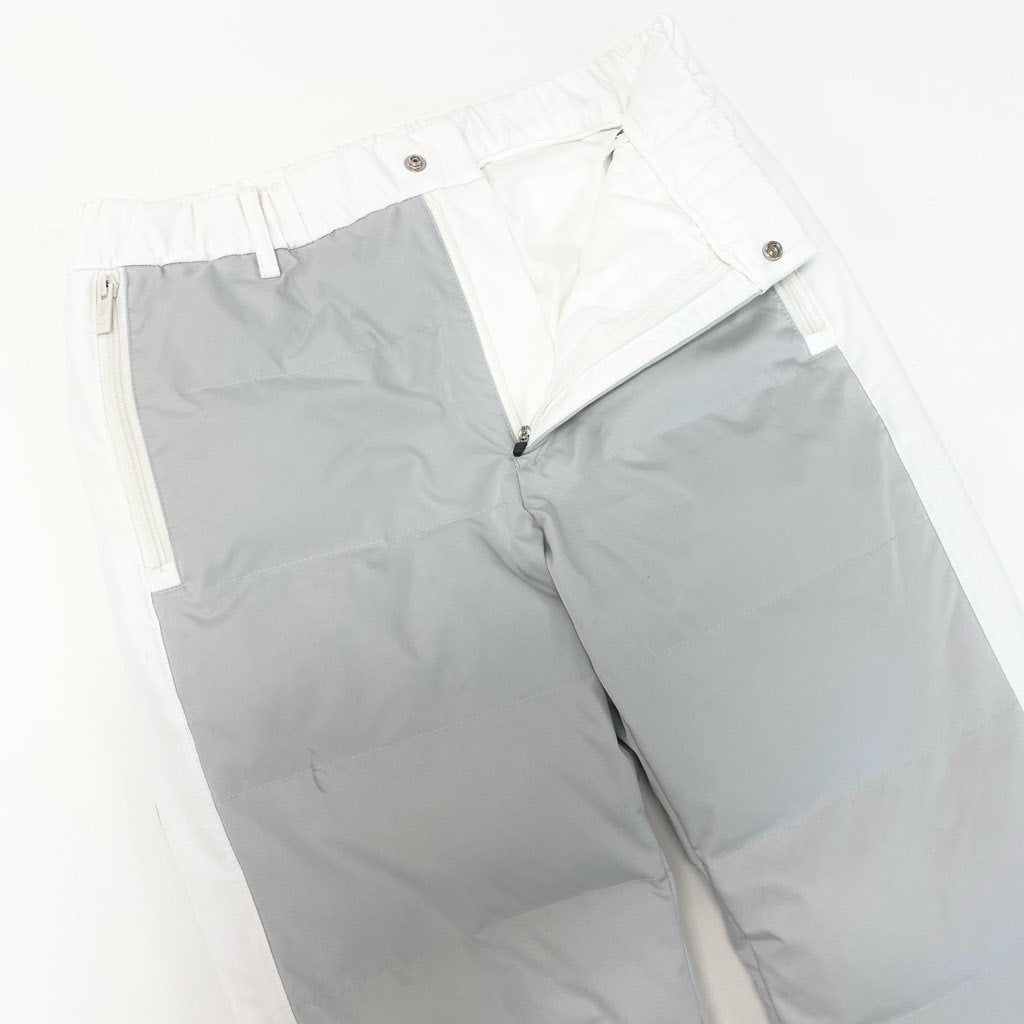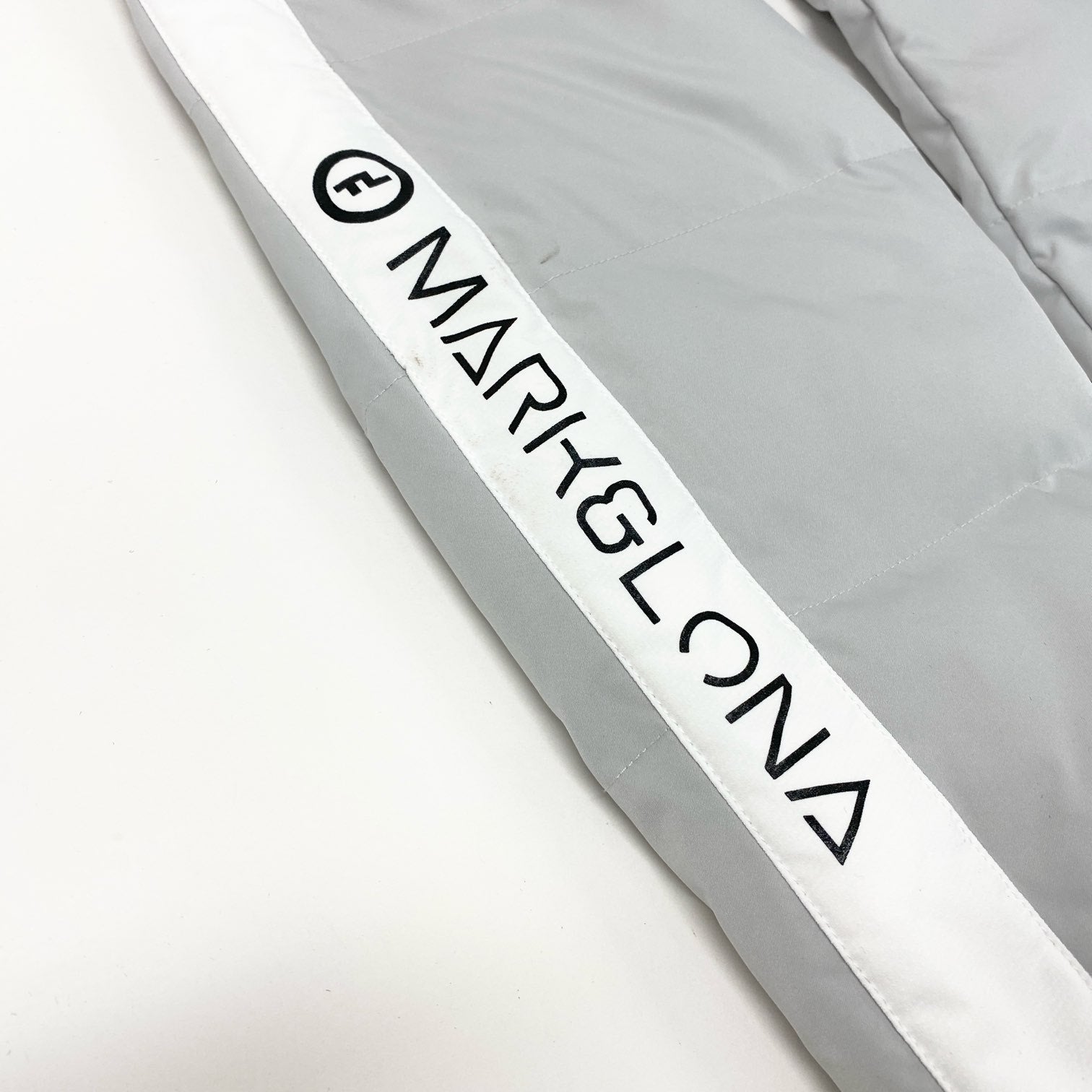 ライトグレーとホワイトの配色が爽やかな印象を与えるMARK&LONAの中綿パンツ。スポーティながら上品な質感に仕上げられています。サイドにはブランドロゴをあしらい、洗練されたアクセントをプラス。防風性・保温性に優れ、寒冷時のラウンドやトレーニングにも最適な一本です。スタイリッシュかつ機能的な冬ゴルフウェアとして活躍します。