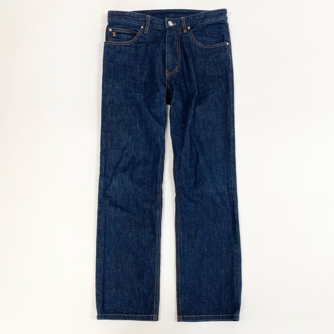 46j3 《美品》 LOUIS VUITTON ルイヴィトン デニムパンツ LV刺繍 ロゴボタン H7D50WDBB SL FR36 インディゴブルー コットン メンズo07t