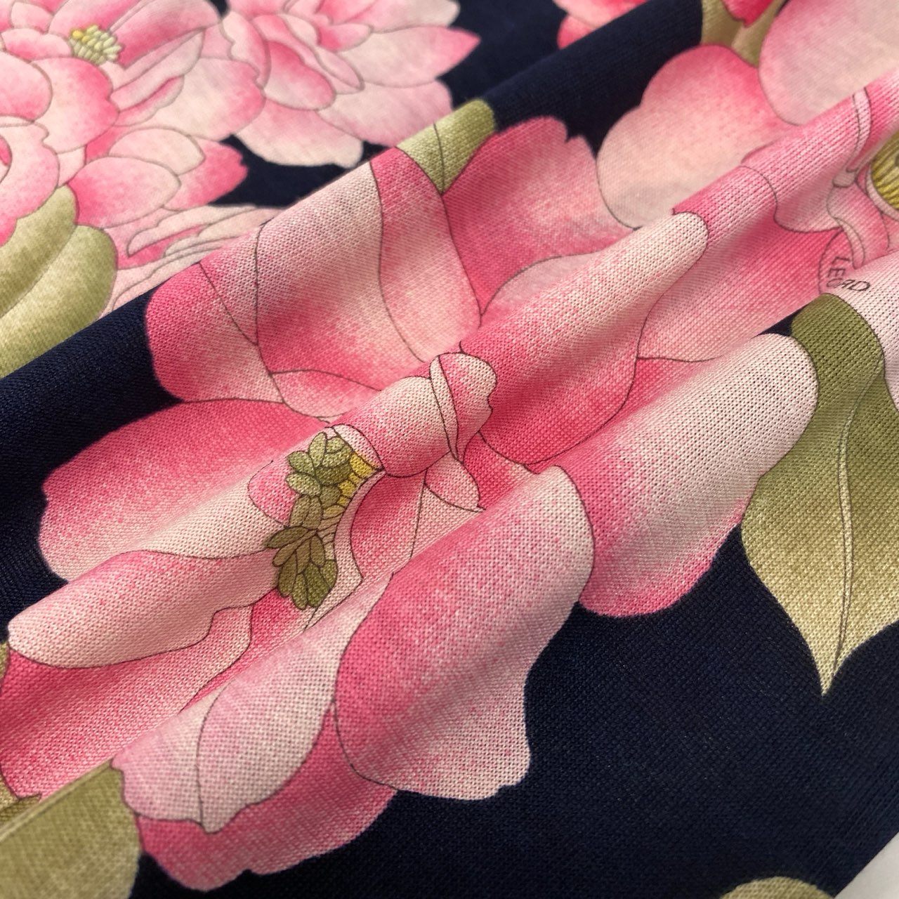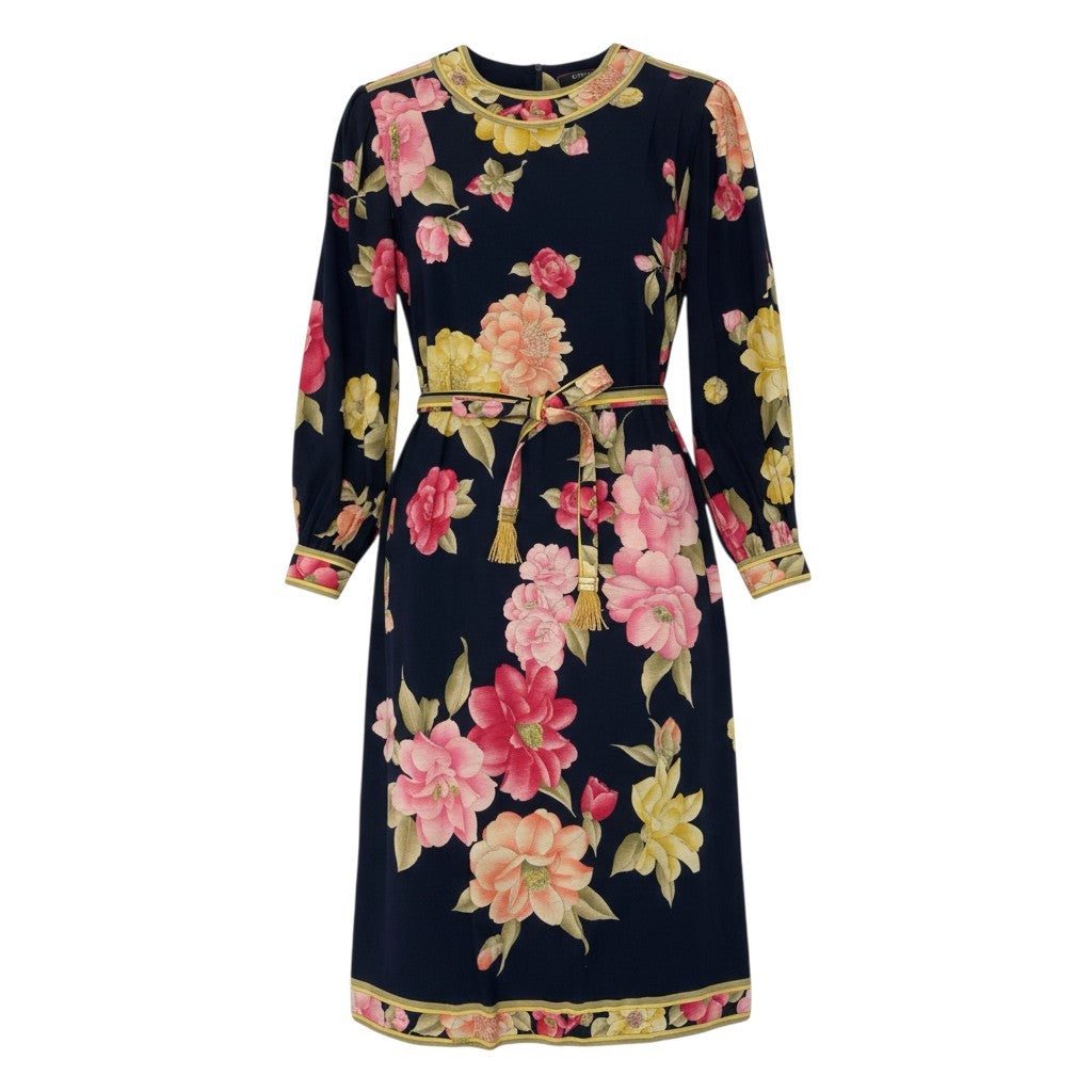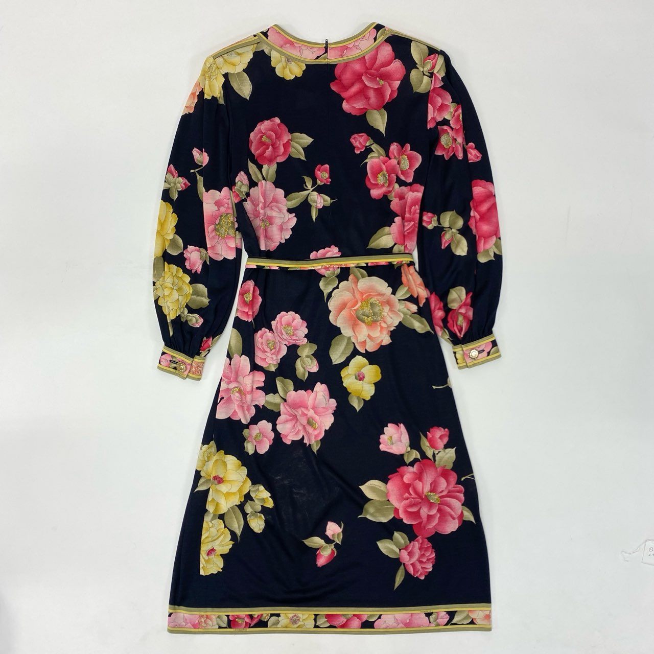 19k10 LEONARD レオナール 長袖ワンピース ロングワンピース クルーネック 花柄 0320100 Mサイズ ネイビー レディースu02t