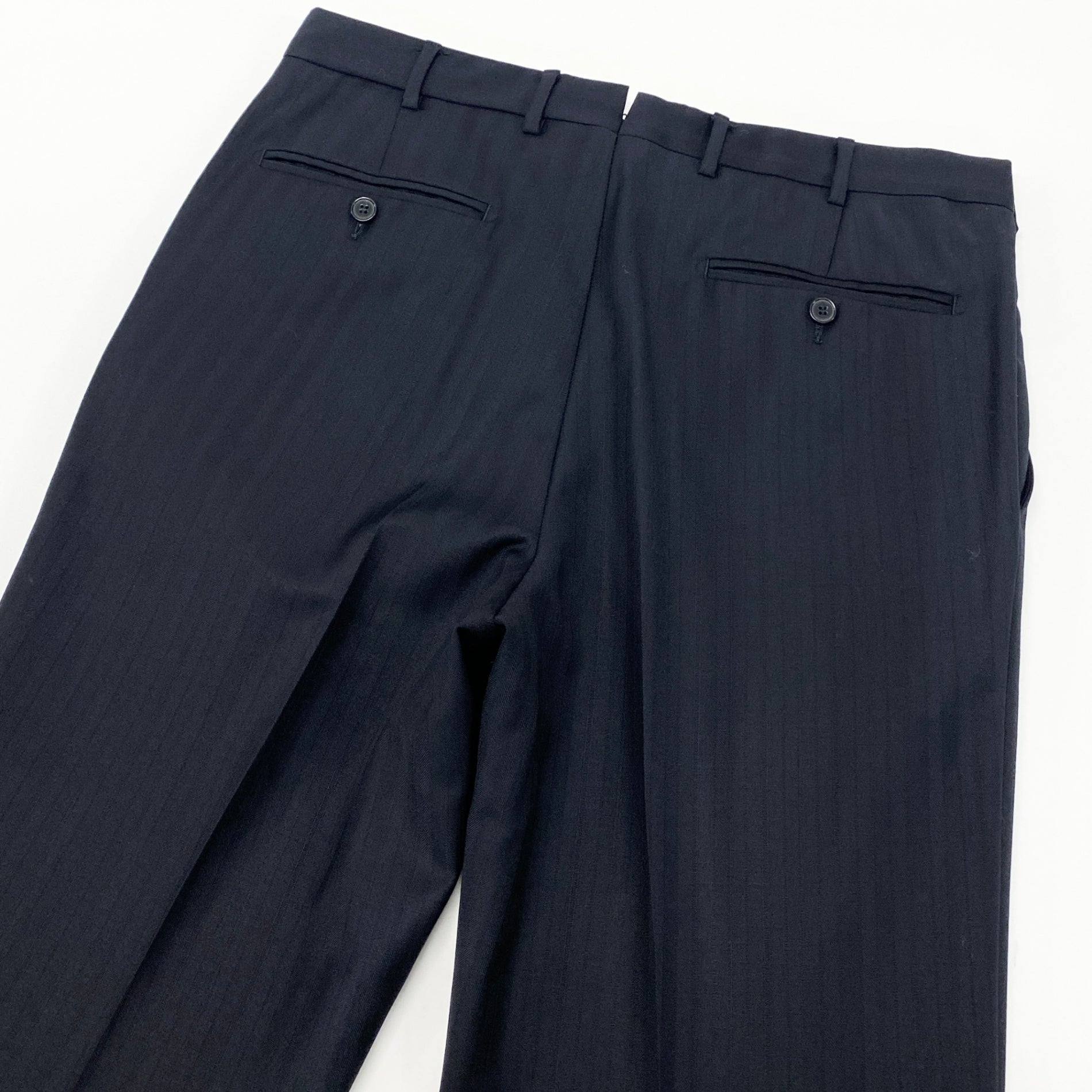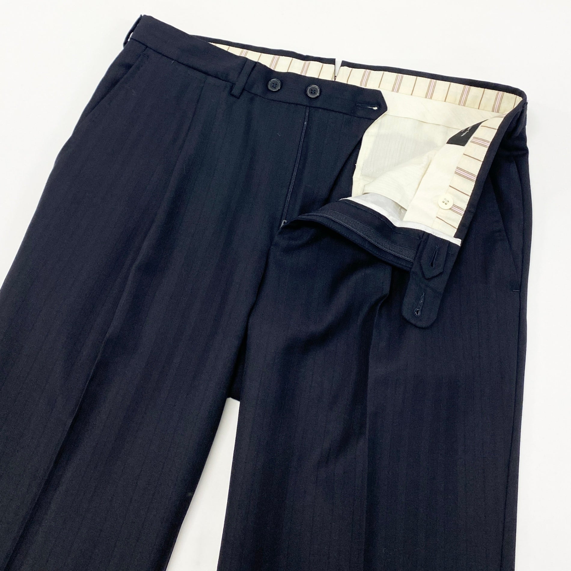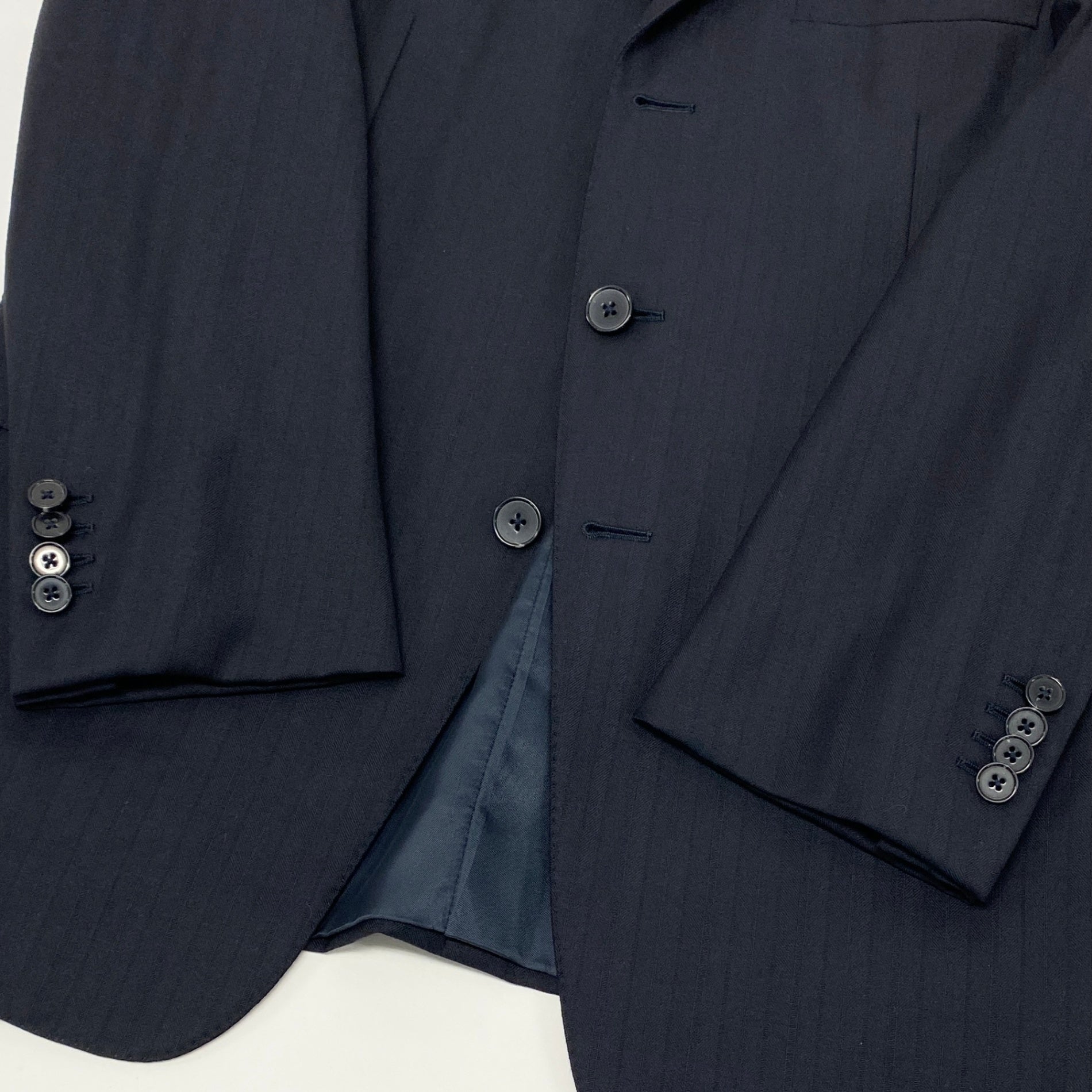 ミッドナイトネイビーのシャドーストライプ柄が上品に映える、Ermenegildo Zegna(エルメネジルド ゼニア)のスーツセットアップです。滑らかで上質なウール生地は光沢を抑えたドレッシーな表情で、ビジネスからフォーマルまで幅広く活躍します。ジャケットは構築的な肩とバランスの良いシルエットで、パンツも洗練されたストレートラインが特徴。エレガントさと実用性を兼ね備えた一着で、初めての良質スーツにも、ワードローブの格上げにも最適です。