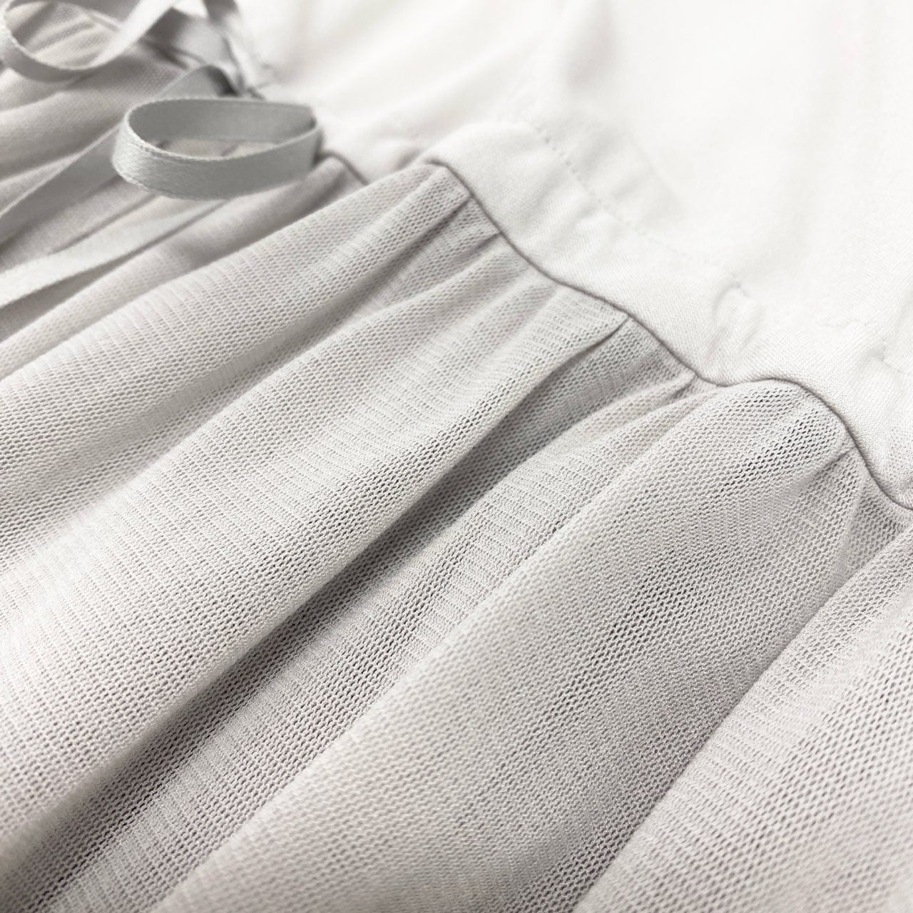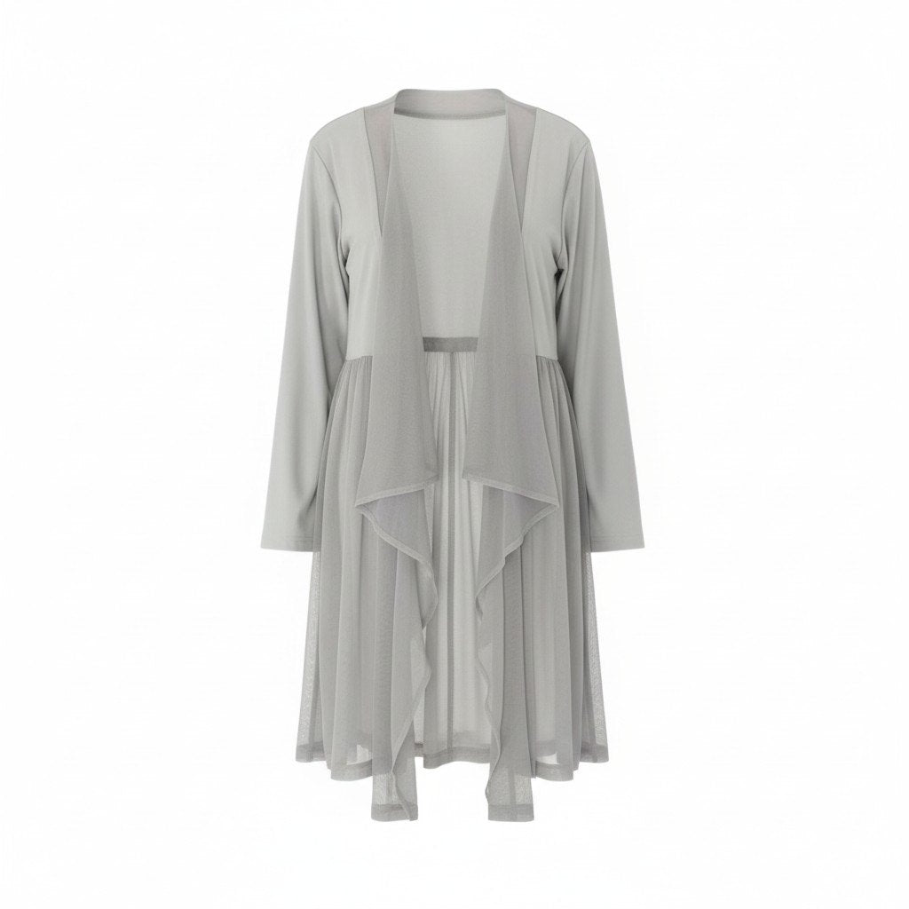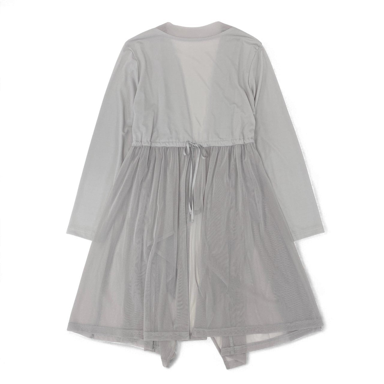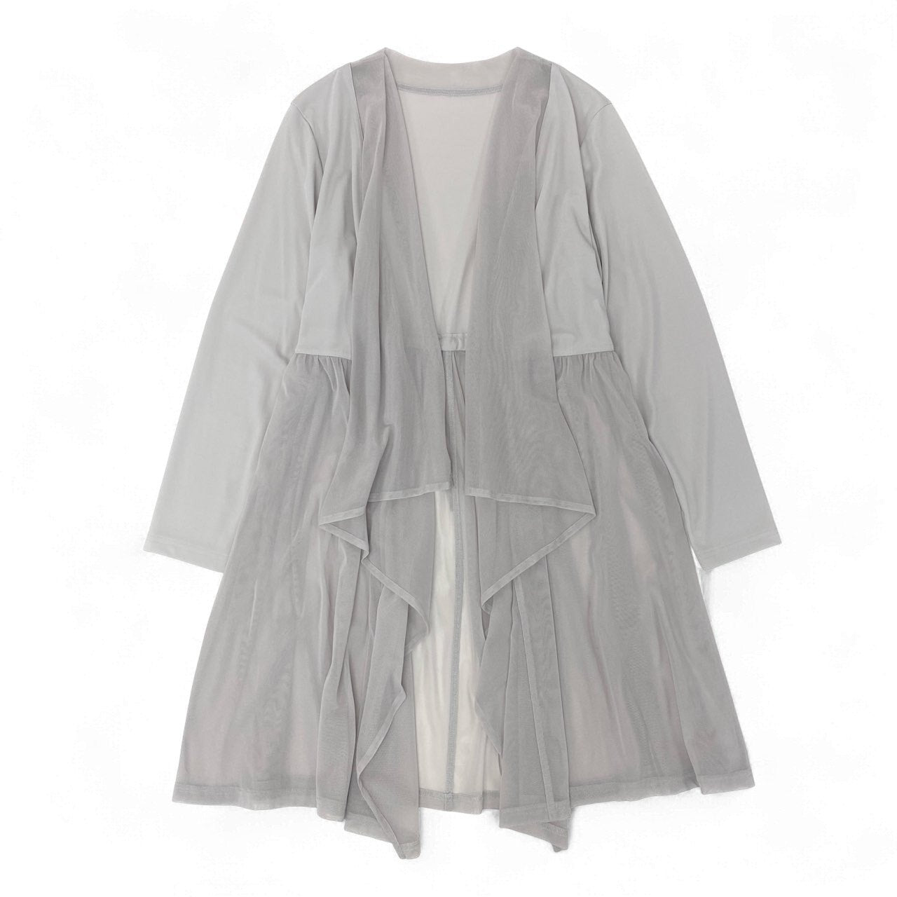 柔らかなドレープ感が美しい、トクコプルミエヴォルのライトグレー・ロングカーディガンです。身頃と裾にはメッシュ切替を取り入れ、軽やかに揺れるエレガントなシルエットを演出。薄手素材で季節を問わず使いやすく、さらりと羽織るだけで上品なニュアンスが完成します。ワンピースにもパンツスタイルにも合わせやすく、デイリーからお出かけまで幅広いシーンに活躍。洗練されたライトグレーで、コーデを柔らかくまとめてくれる一着です。