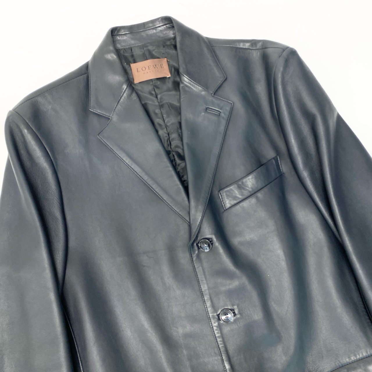 Mb23 LOEWE ロエベ レザーテーラードジャケット レザージャケット アウター H1F7080EL 48サイズ ブラック ラムレザー 羊革 メンズo07t