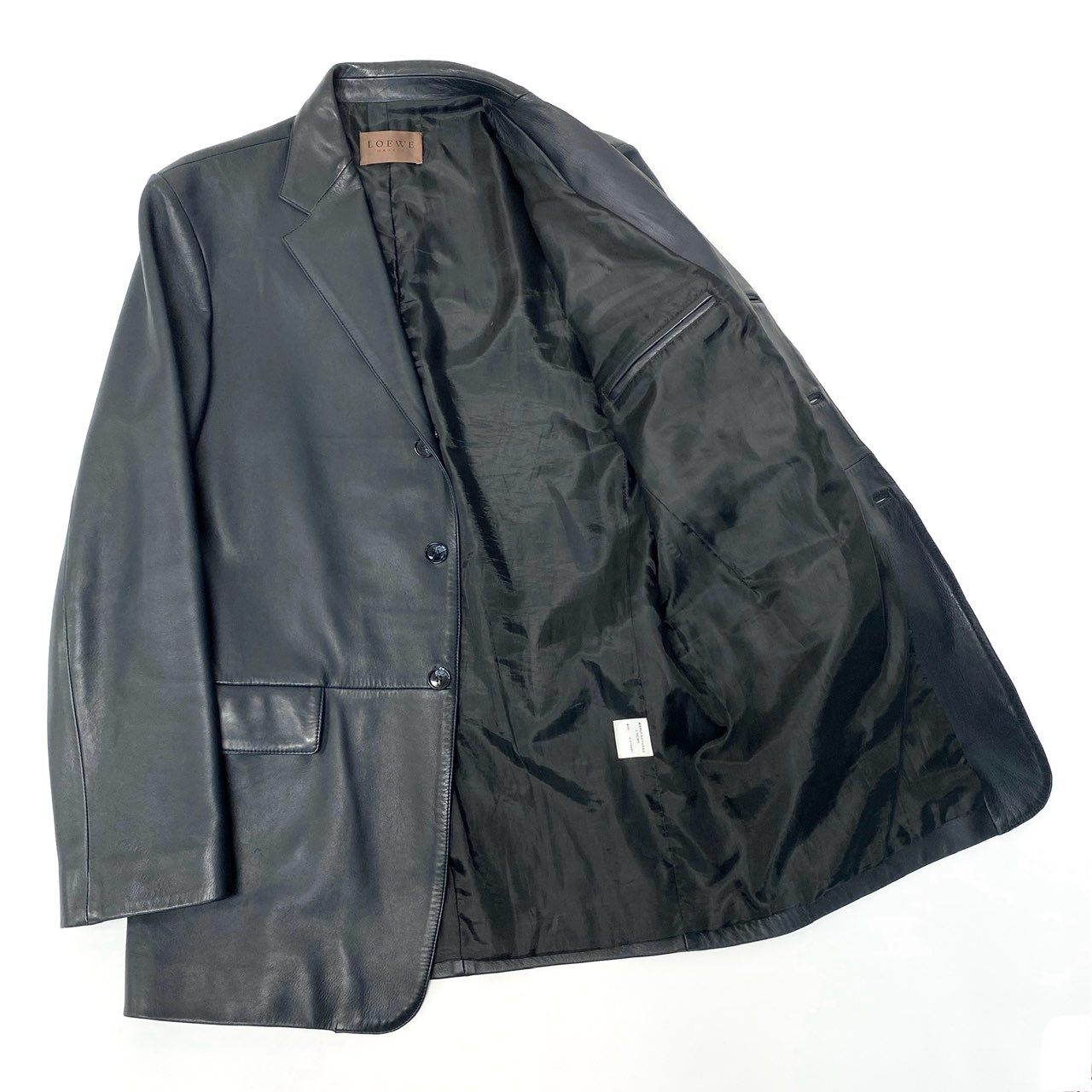 54b23 LOEWE ロエベ レザーテーラードジャケット レザージャケット アウター H1F7080EL 48サイズ ブラック ラムレザー 羊革 メンズo07t