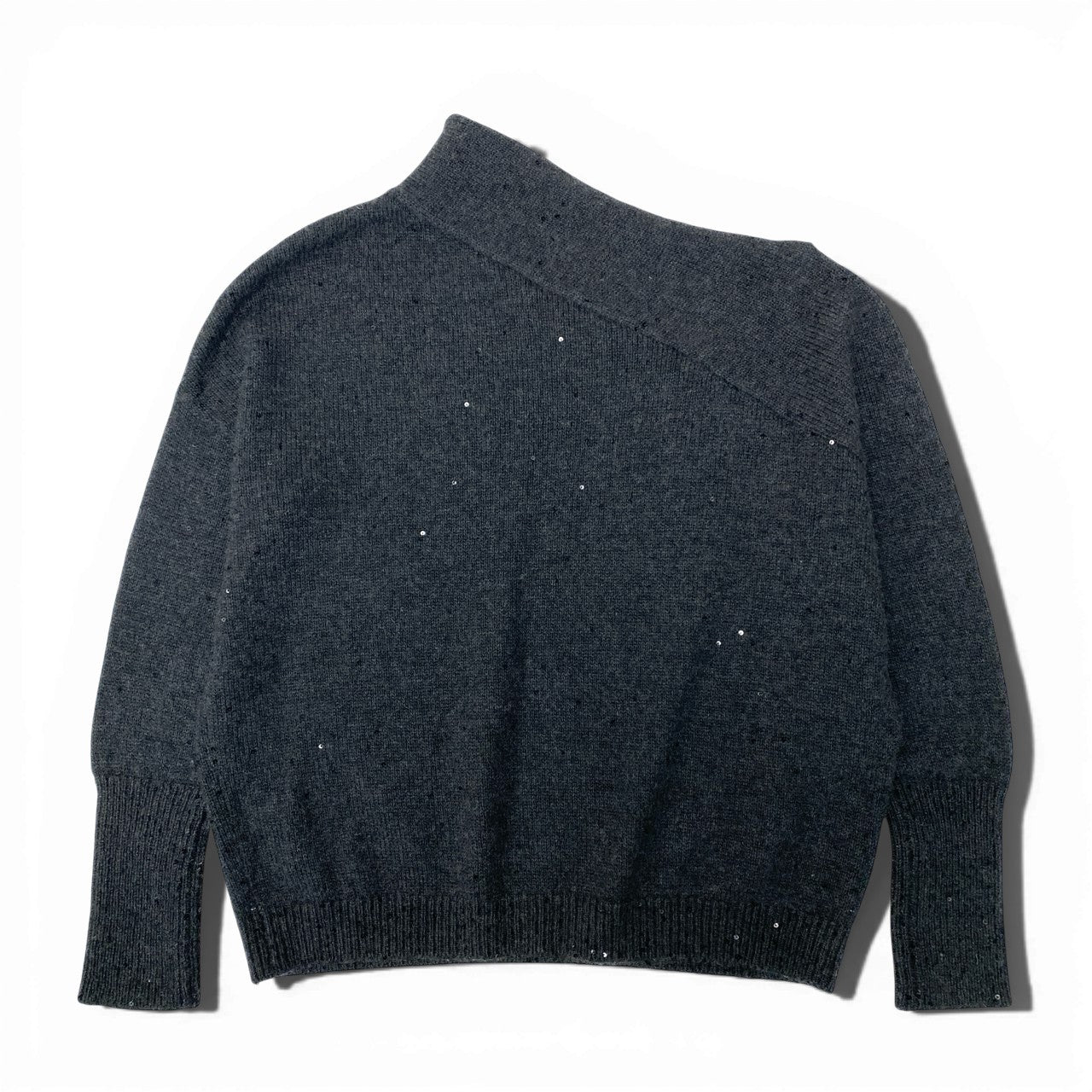 48a19 BRUNELLO CUCINELLI ブルネロクチネリ スパンコールデザイン カシミヤシルク ニットセーター サイズXXS グレー系 レディース 女性用 トップスk02i