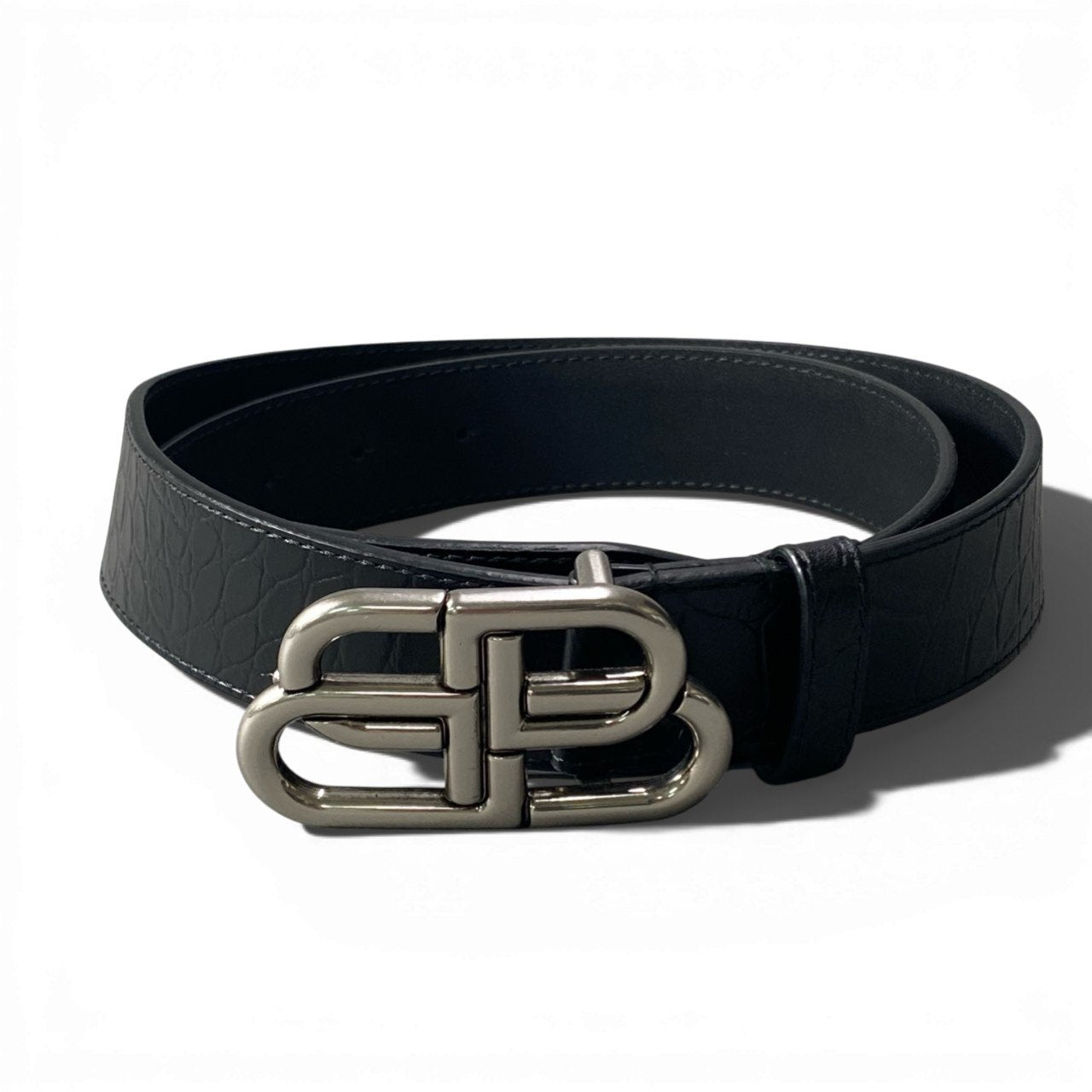 c4 《極美品》 BALENCIAGA バレンシアガ BB ラージロゴ クロコ型押し ベルト BB Large Mock Croc Belt ブラック レザー 箱 保存袋有t18r