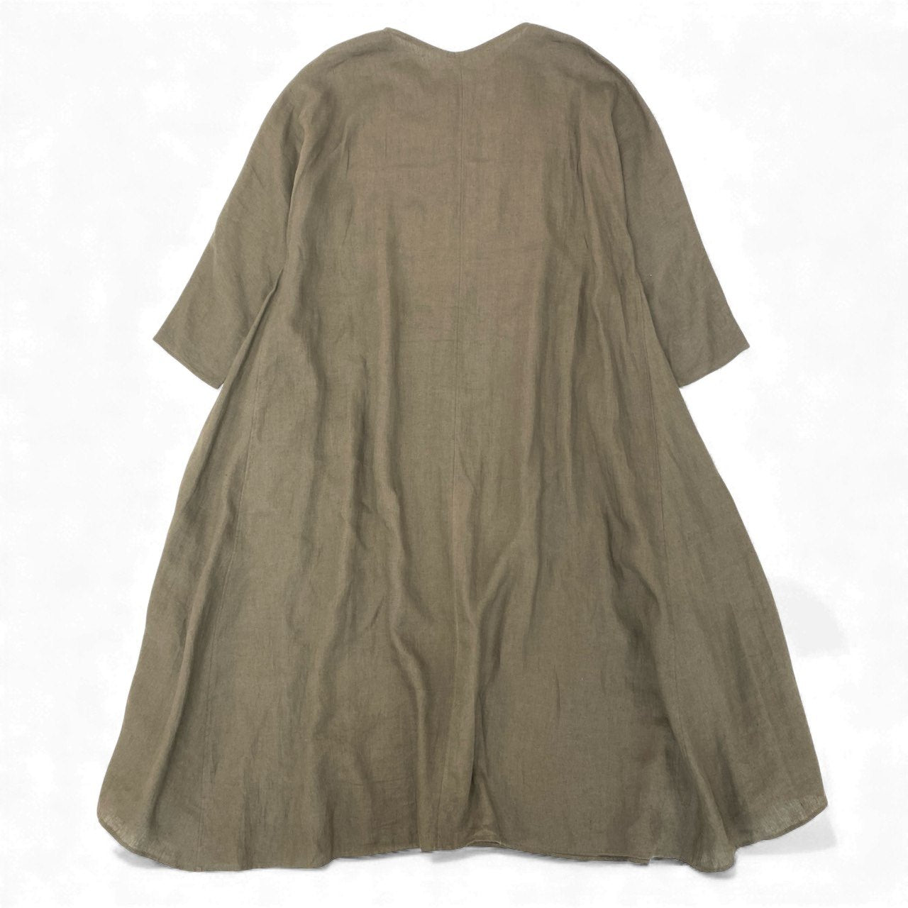 28k29【美品】JURGEN LEHL ヨーガンレール 長袖リネンワンピース ロングワンピース フレア リネン100% J0103FA011 Mサイズ カーキ レディースu02t