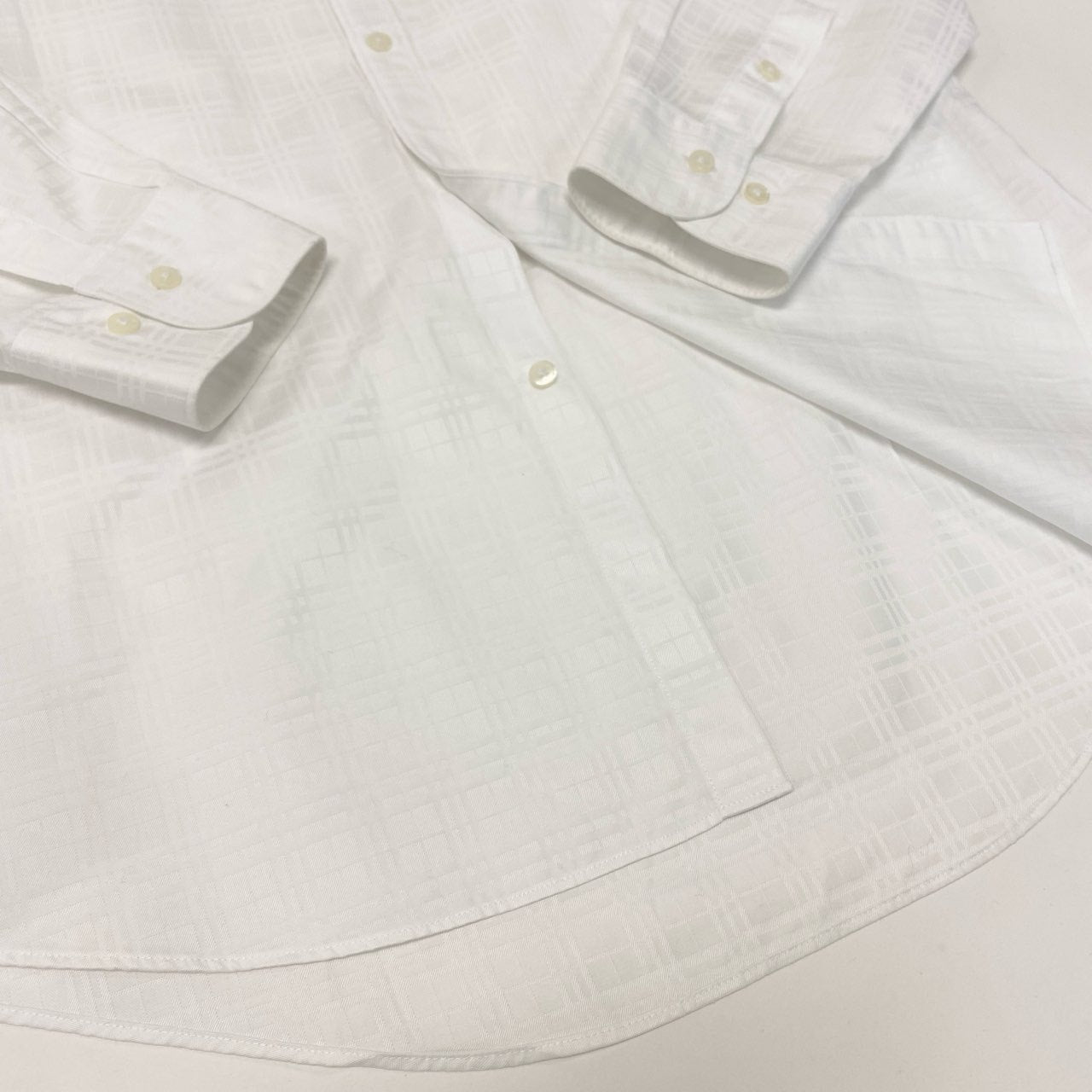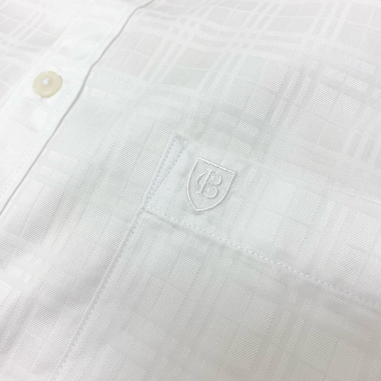 ブラックレーベル クレストブリッジのホワイトボタンダウンシャツ。上品な光沢を持つコットン生地に、同色のチェック織り柄を施したさりげないデザインが特徴です。シンプルながら立体感のある織り柄がアクセントとなり、清潔感と高級感を両立。胸ポケット付きで実用性もあり、スーツスタイルからオフのスマートカジュアルまで幅広く活躍します。洗練された印象を演出する、一枚持っておきたいベーシックシャツです。