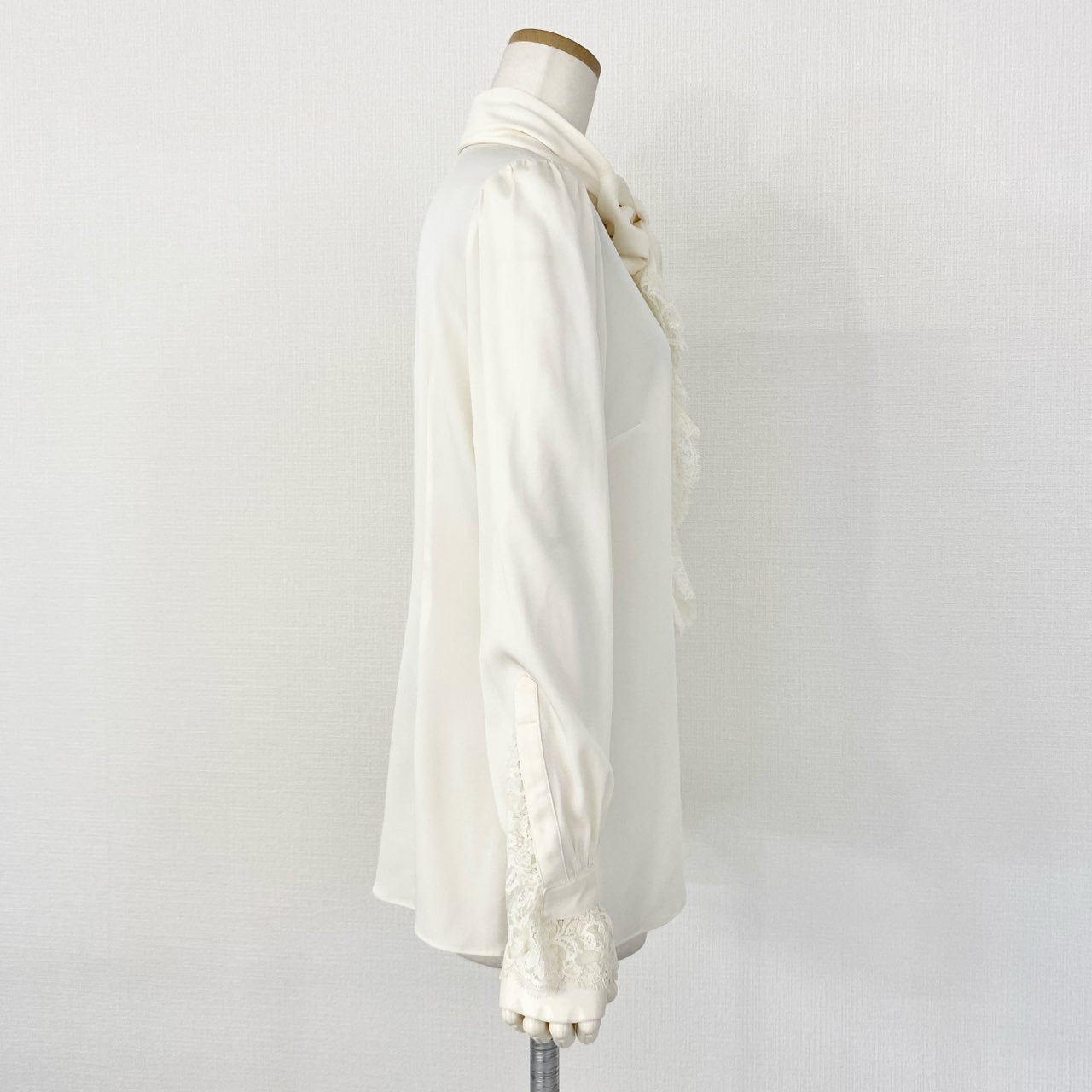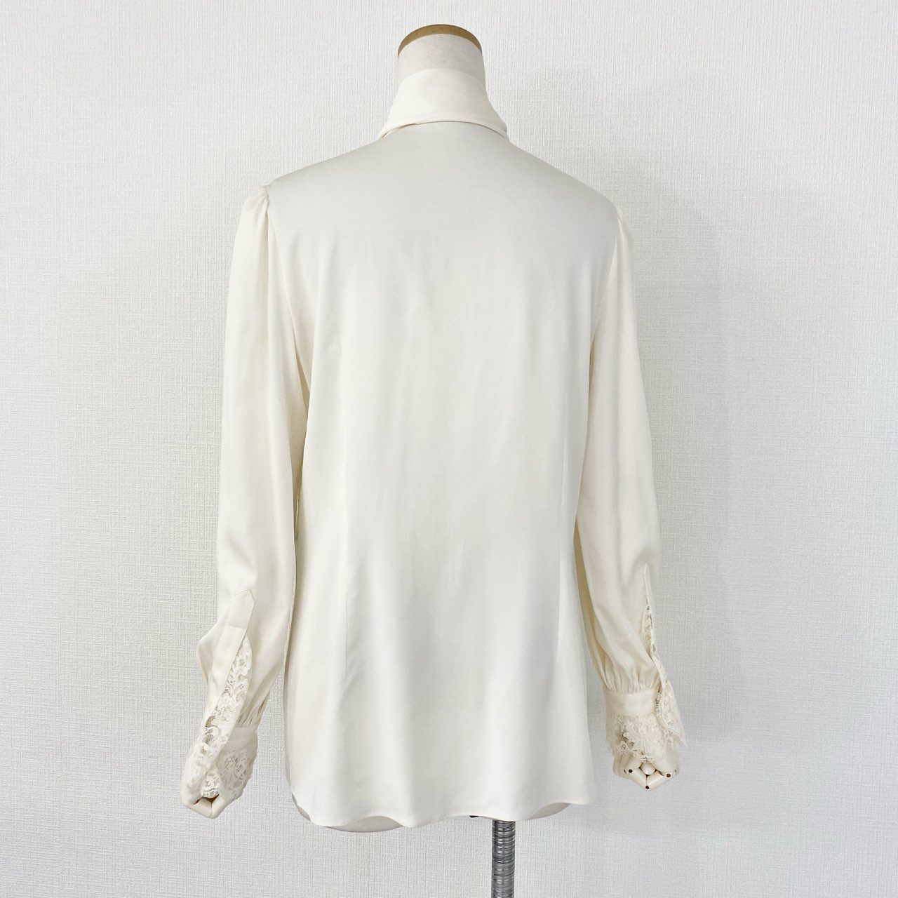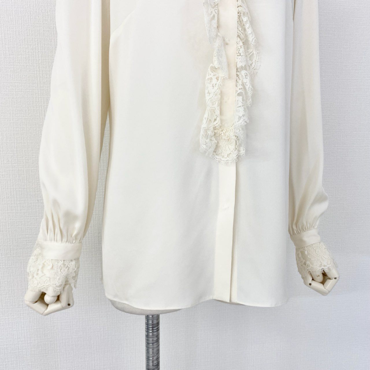2f14-2 DOLCE&GABBANA ドルチェ&ガッバーナ レース切替 フリルブラウス ボウタイ シルクブラウス サイズ42 クリーム レディース 女性用