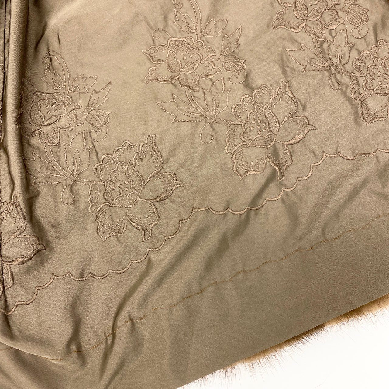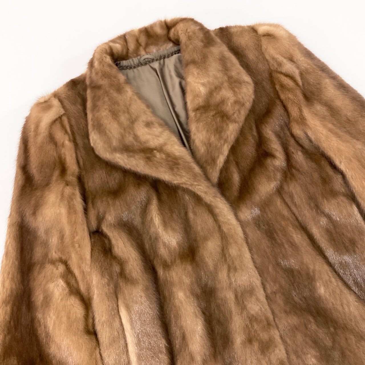 やわらかな光沢感が美しい**パステルミンク(SAGA MINK / 銀サガ)**のロングコートです。ブラウン系の自然な濃淡が毛並みの立体感を際立たせ、上質なふんわり感としなやかさが贅沢な着心地を提供します。大きめのショールカラーが顔まわりを華やかに見せ、裏地にはエレガントな刺繍入りでディテールにもこだわりが感じられる一着。ひざ丈の上品なシルエットはフォーマルから冬のお出かけまで幅広く活躍。高級ミンクならではの保温性と風格を楽しめる永く愛用できるコートです。