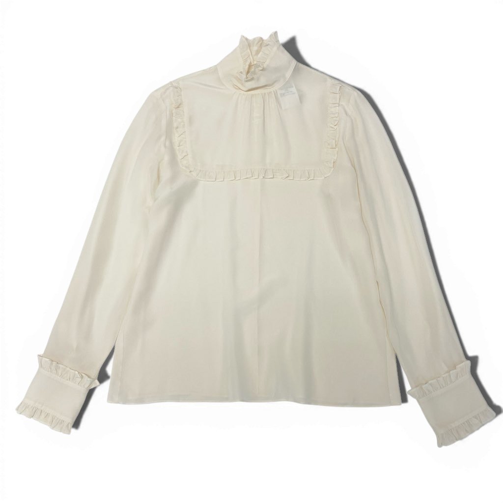 4a9 Max Mara マックスマーラ シルクブラウス フリルブラウス シャツブラウス トップス 36サイズ アイボリー シルク100% レディースk02i