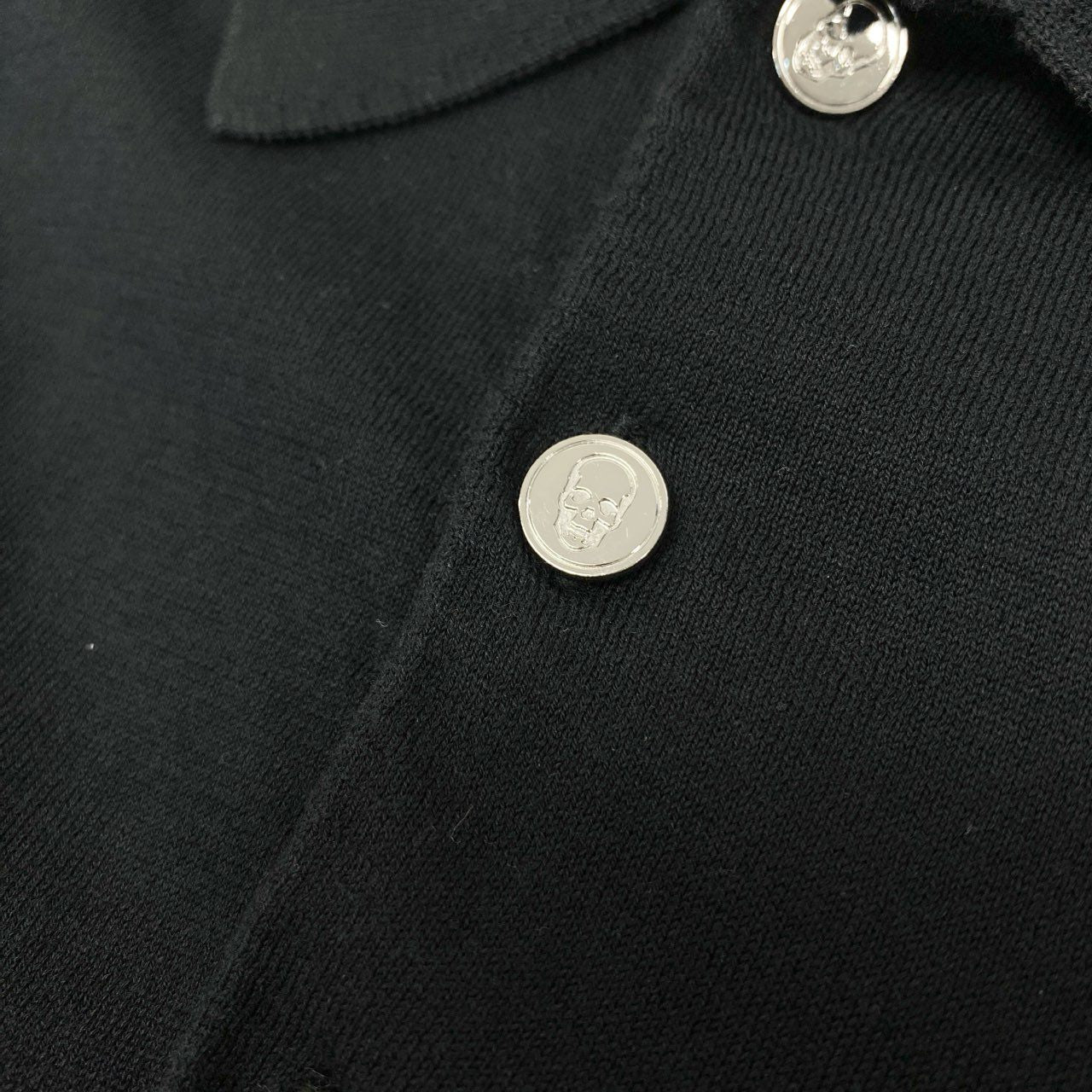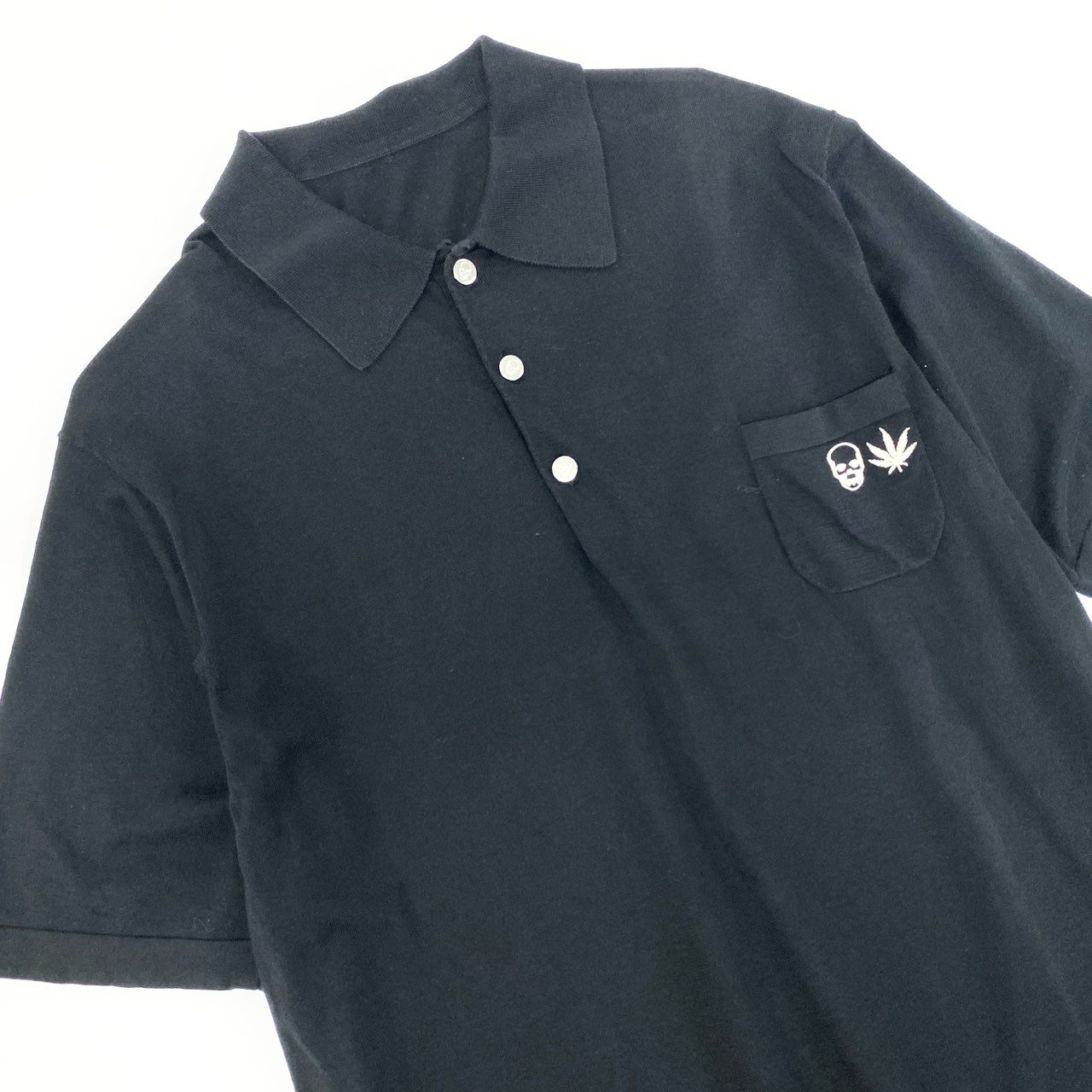 3l27 lucien pellat-finet ルシアンペラフィネ 半袖 ニットポロシャツ コットンニット ワンポイント刺繡 スカル メンズ 紳士服 L ブラック 綿100%k02i