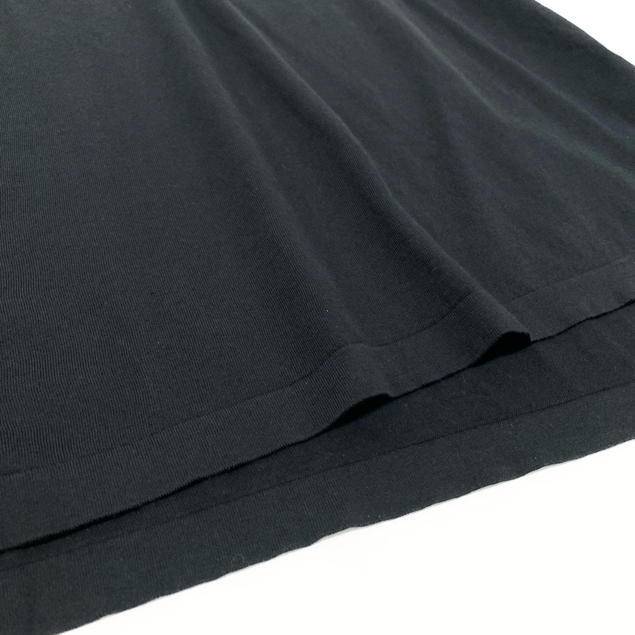表記サイズL、実寸は着丈77cm・肩幅47cm・身幅57cm・袖丈27cmで、メンズではヒップが隠れるやや長めの丈感です。