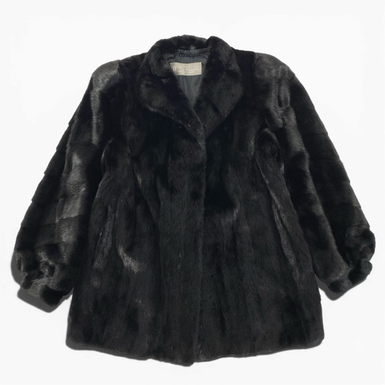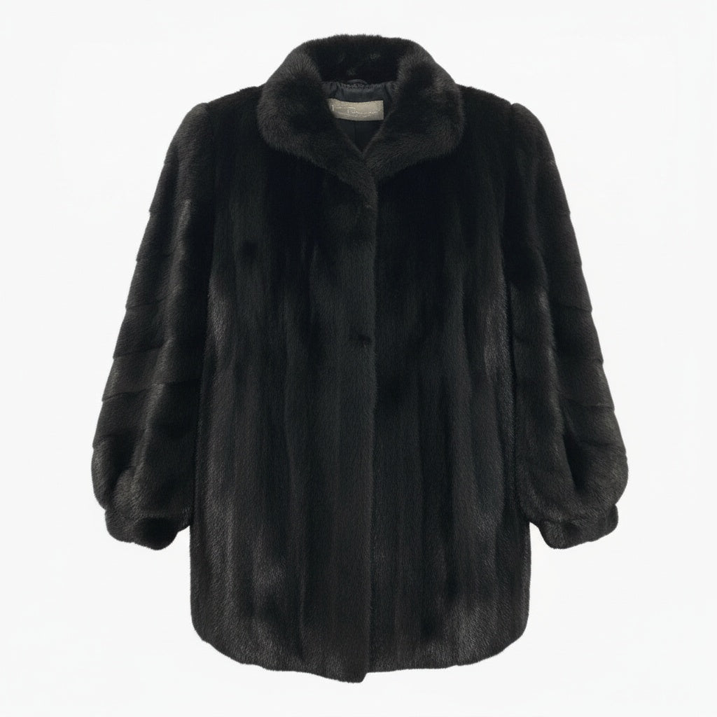 ブラックカラーのダークミンクを使用した、サガミンクの高級感あふれる毛皮コートです。横段デザインにより立体感が生まれ、艶のある毛足が美しく映えます。ミンク特有のなめらかな肌触りと高い保温性を兼ね備え、上品で落ち着いた印象です。シンプルな無地デザインのため、ワンピースやパンツスタイルとも好相性。フォーマルから日常のきれいめコーデまで幅広く活躍する一着です。