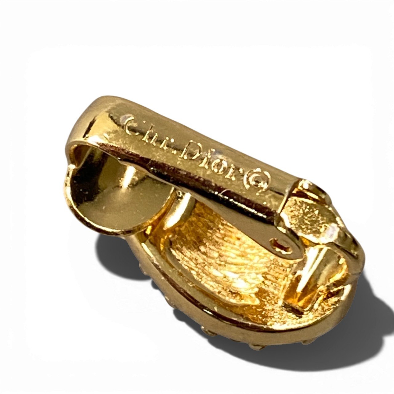 ゴールドカラーのメタル素材にラインストーンを全面にあしらった、Christian Diorのラグジュアリーイヤリングです。 ドロップ型の立体的なモチーフが耳元で美しく輝き、エレガントな印象を演出します。 細かなラインストーンが光を反射し、華やかなゴールドカラーと相まって上品な存在感を放ちます。 ドレススタイルやフォーマルシーンはもちろん、シンプルな装いのアクセントとしても映えるレディースアクセサリーです。