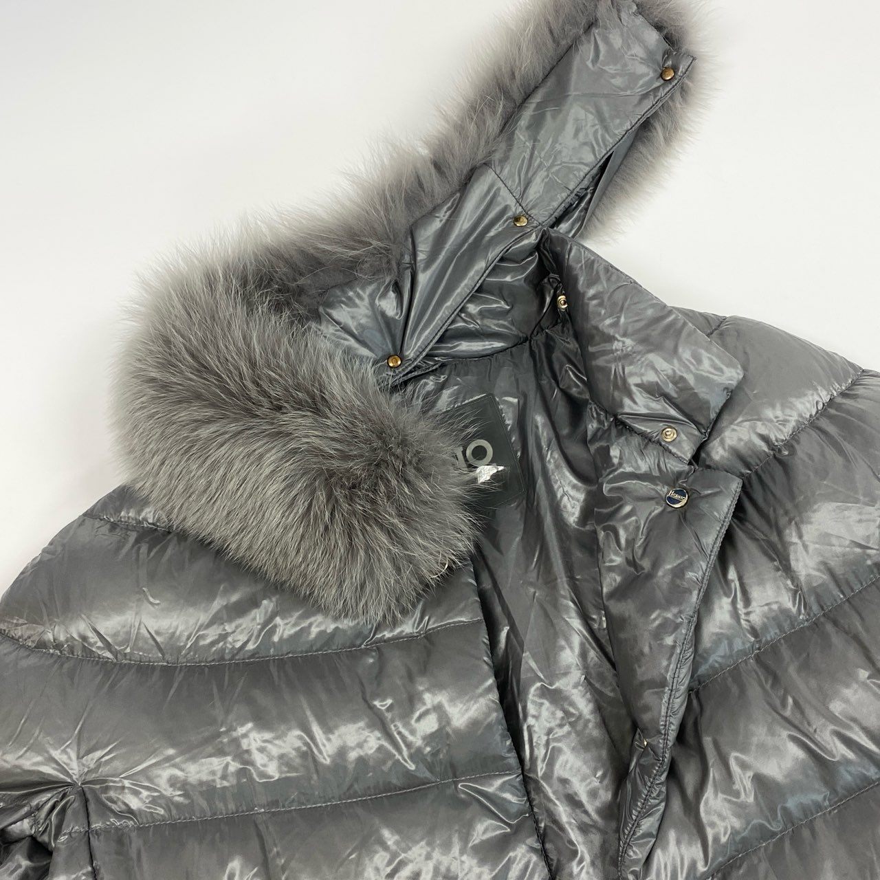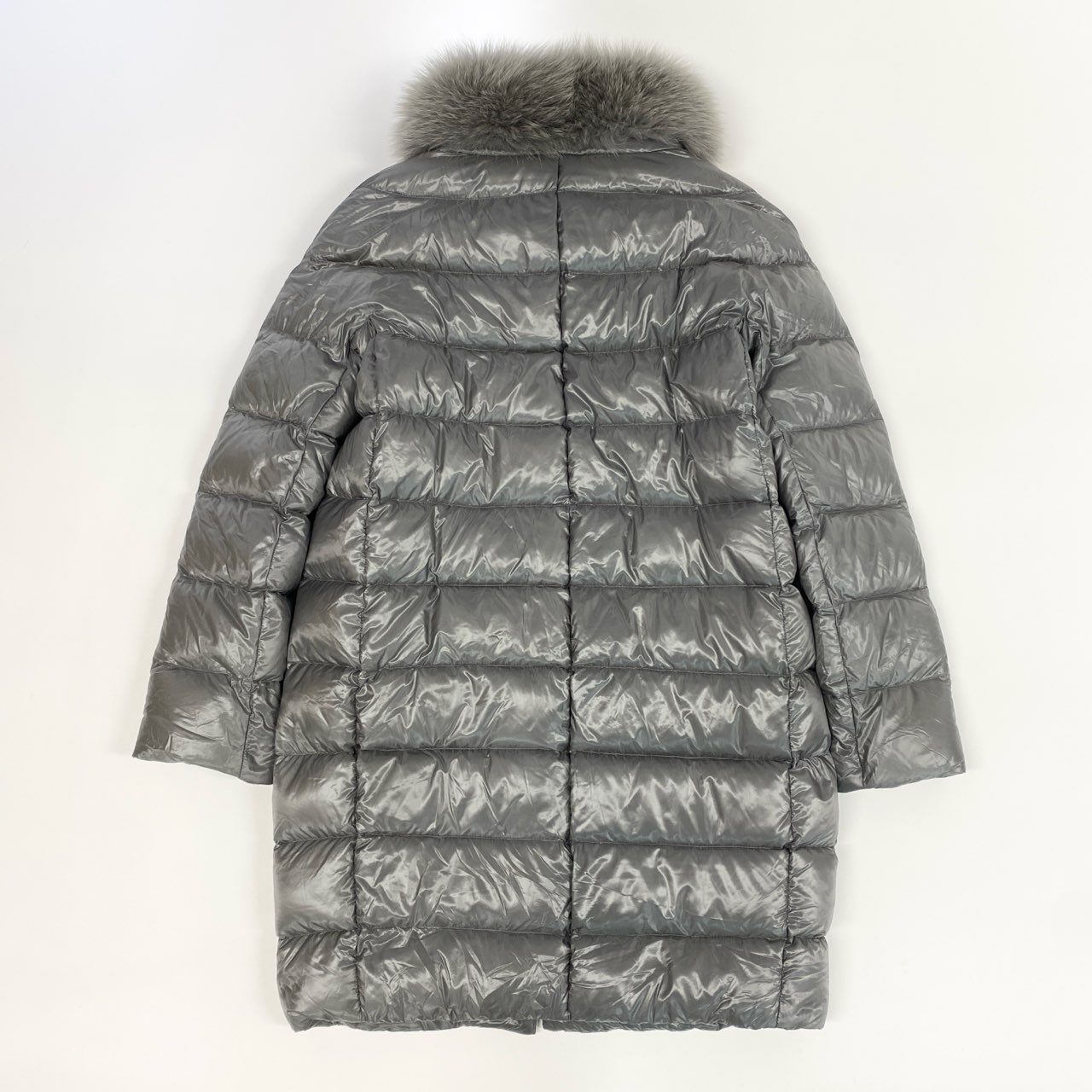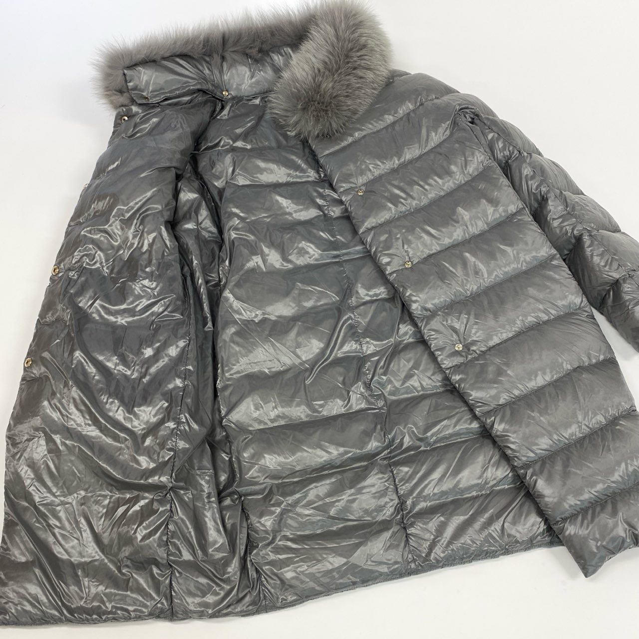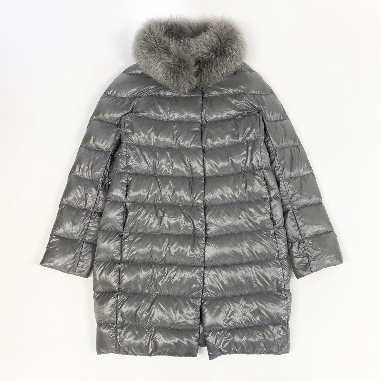75j29 HERNO ヘルノ ロング ダウンコート アウター フォックスファー着脱可 21633DP 12017 2000 42サイズ グレー レディースu02t