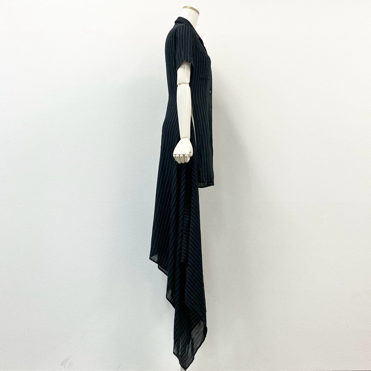 2f6 Jean Paul GAULTIER ジャンポールゴルチエ 00s バックロング ドレープシャツワンピース 40 ブラック ドレス ストライプ
