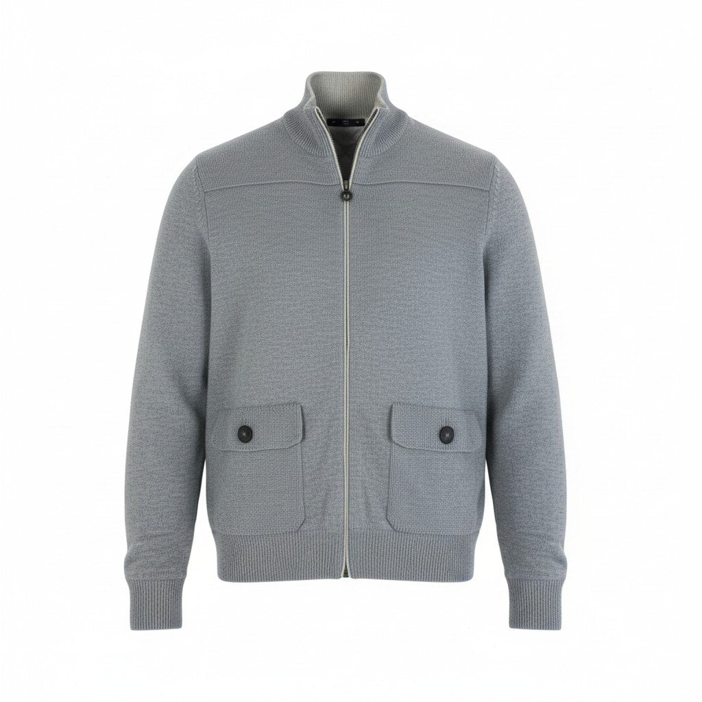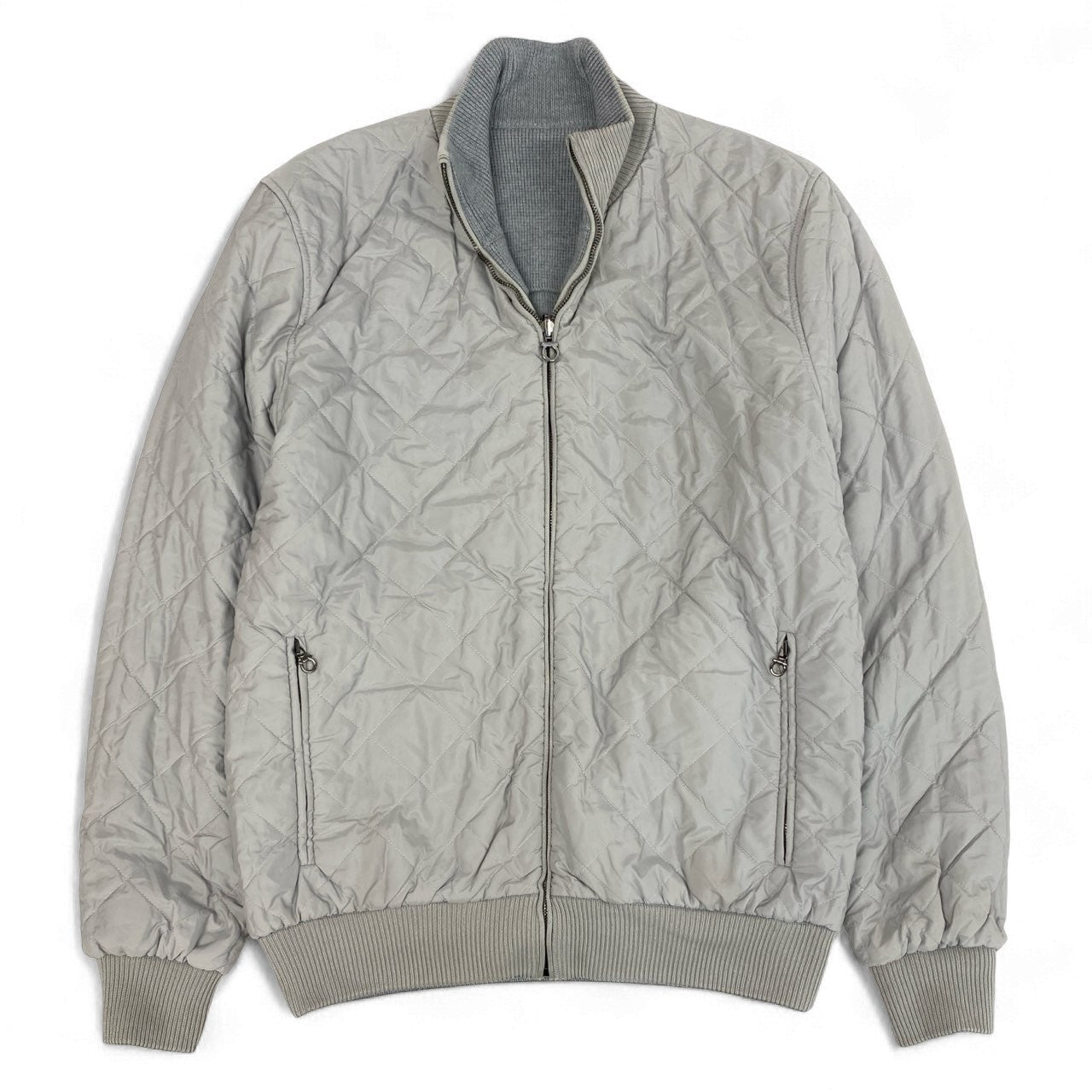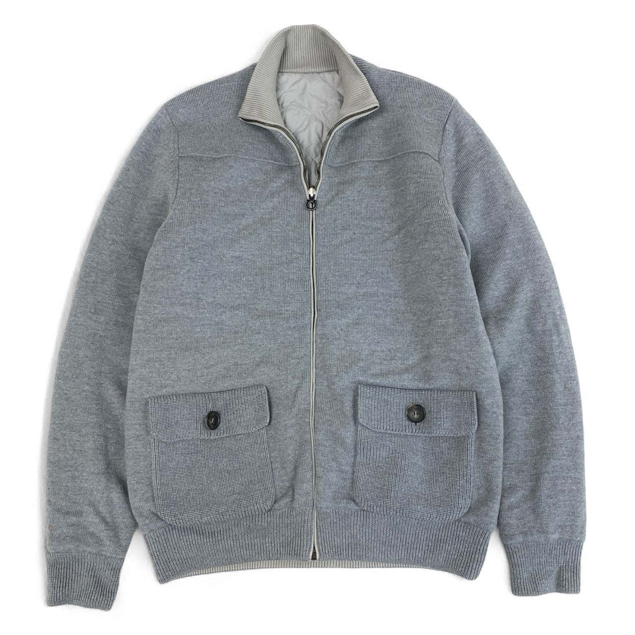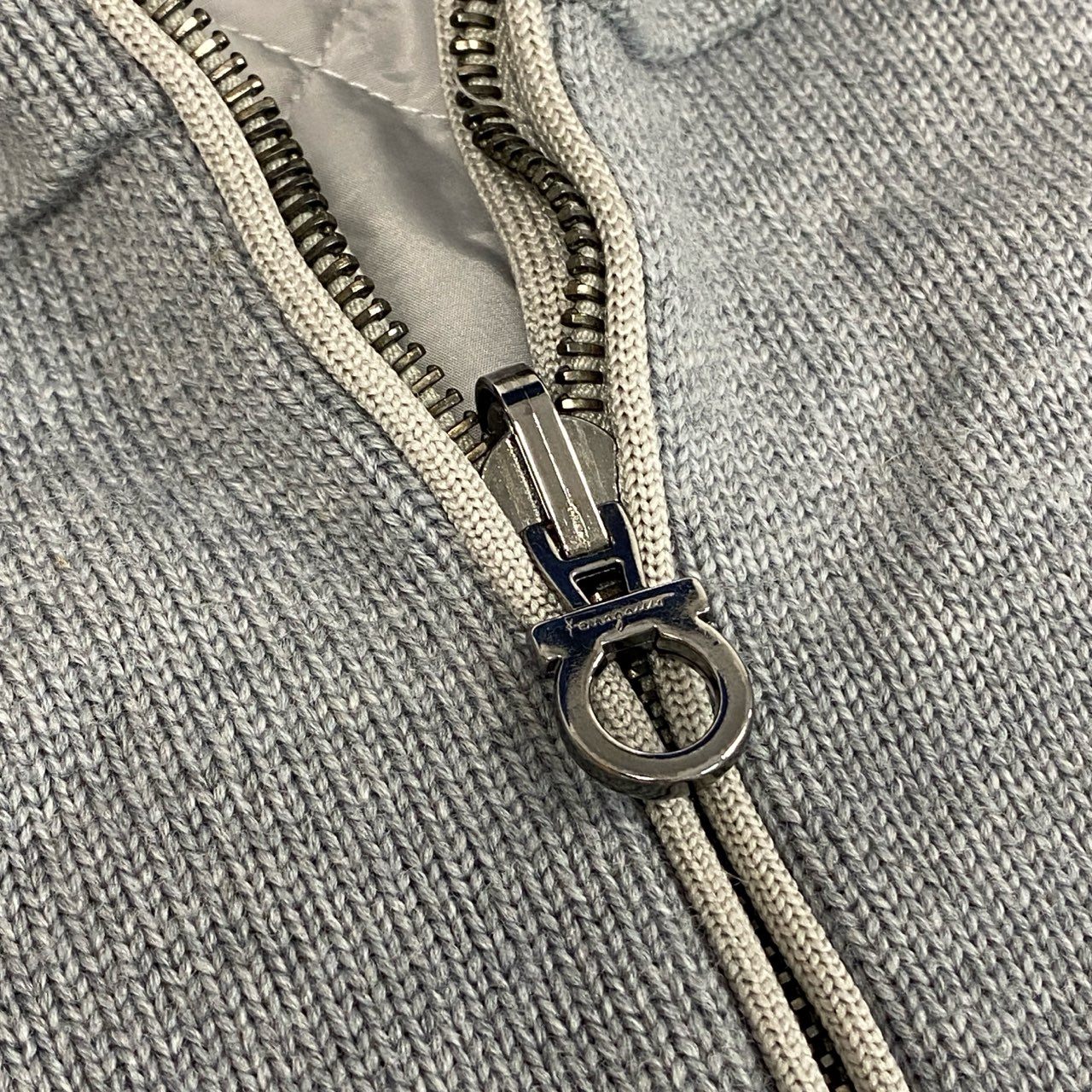 76k21 Salvatore Feraggamo サルヴァトーレフェラガモ リバーシブル ニットジャケット 中綿ブルゾン 2way イタリア製 ガンチーニジップ メンズ 紳士服 L グレーu02t