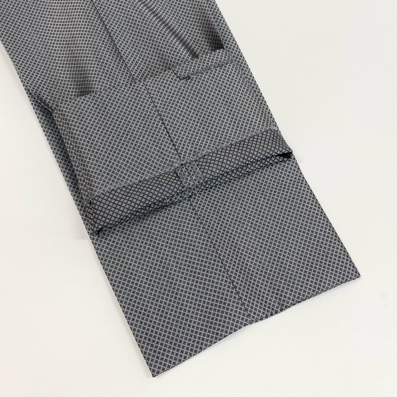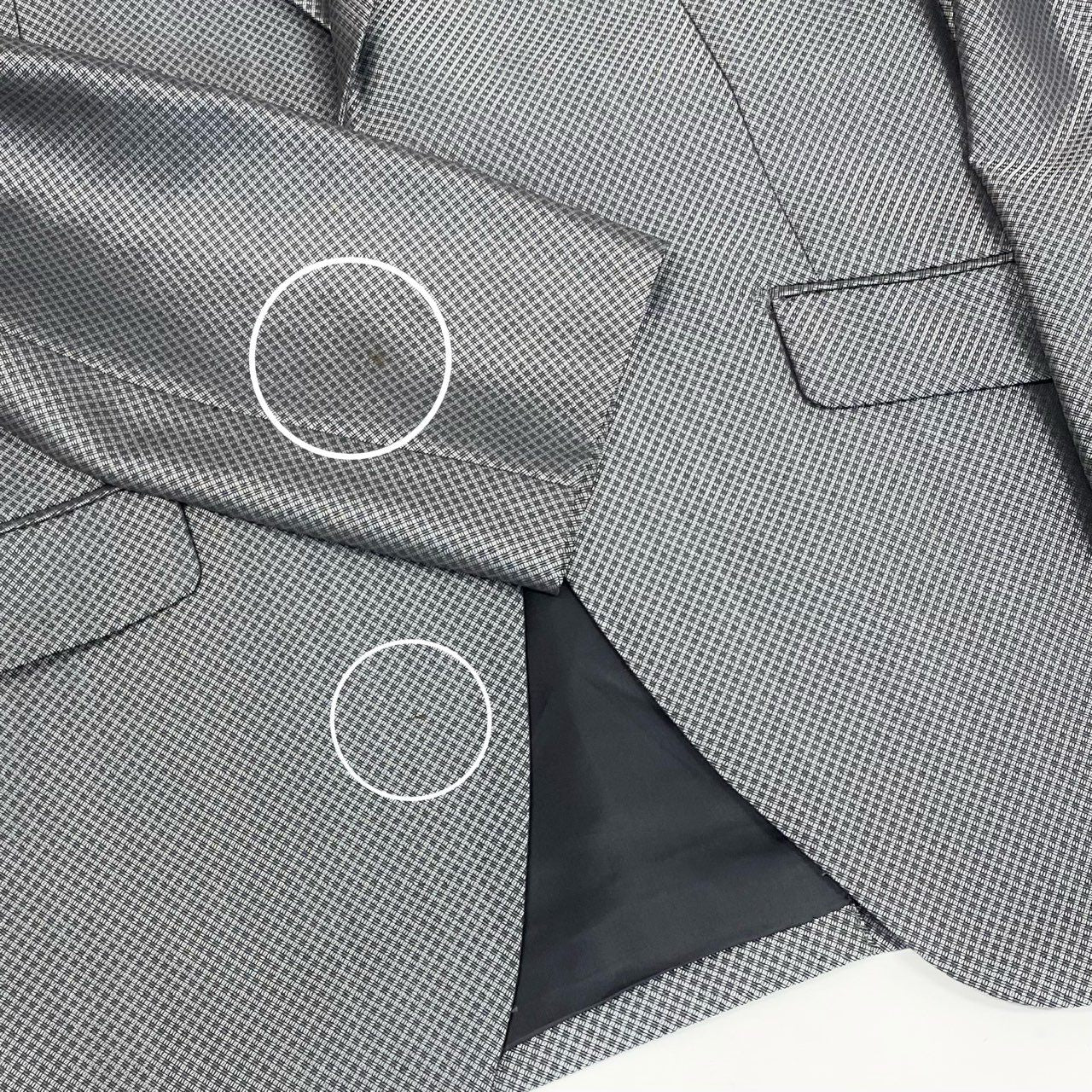 着丈77cm(ジャケット)・股下79cm(パンツ)のバランスから、身長175〜183cm前後・標準〜ややがっしり体型の方に適したサイズ感です。