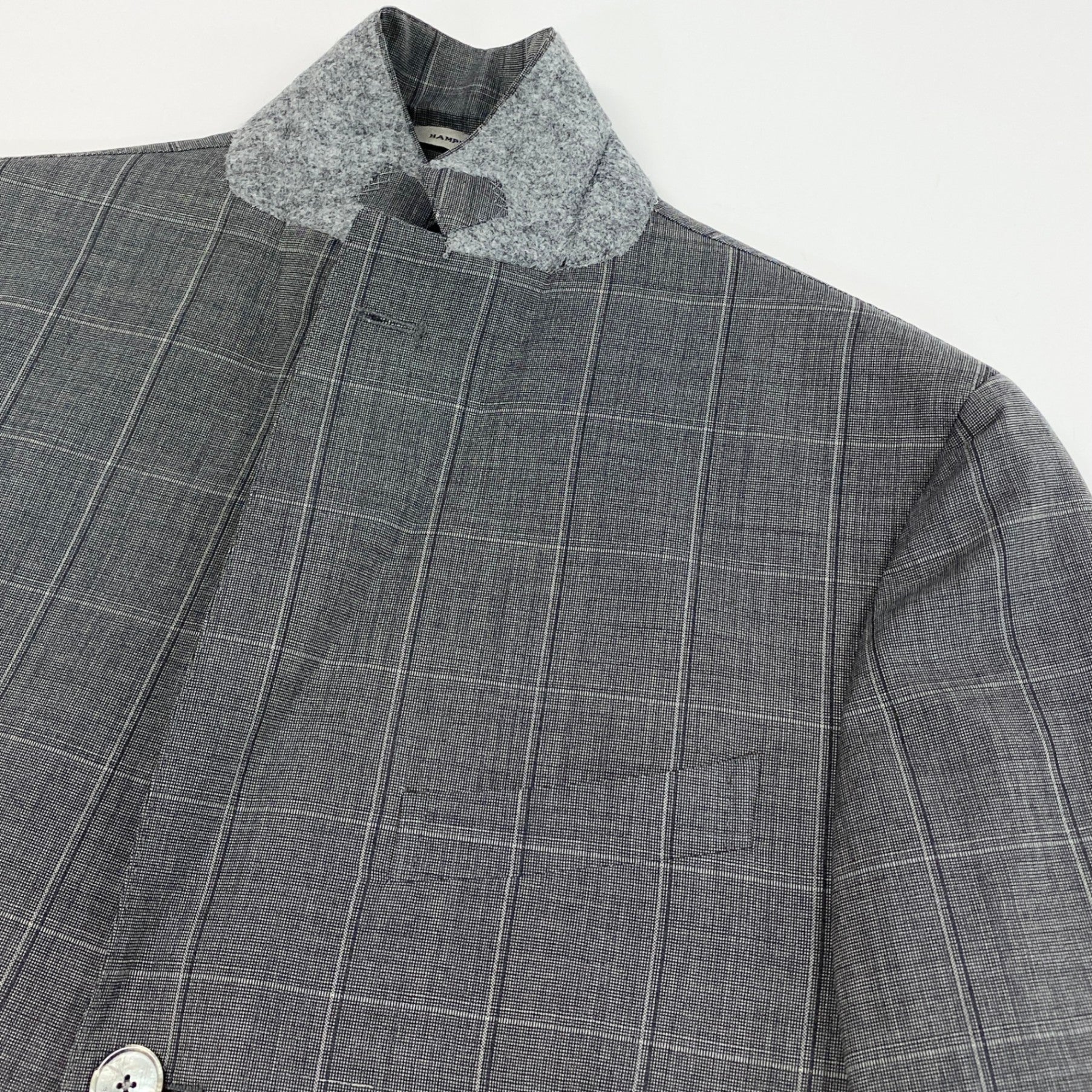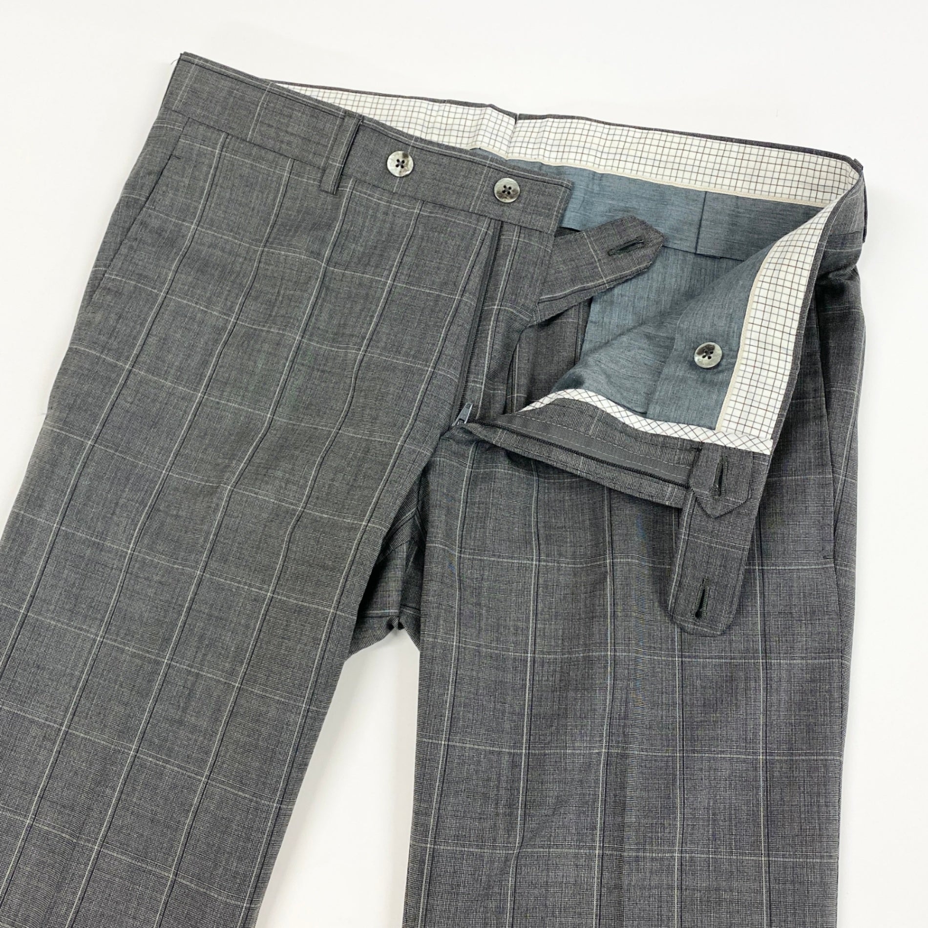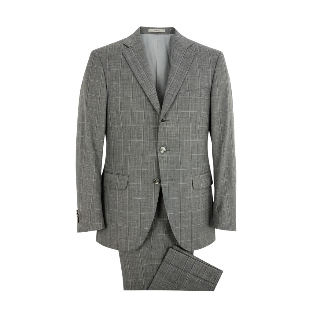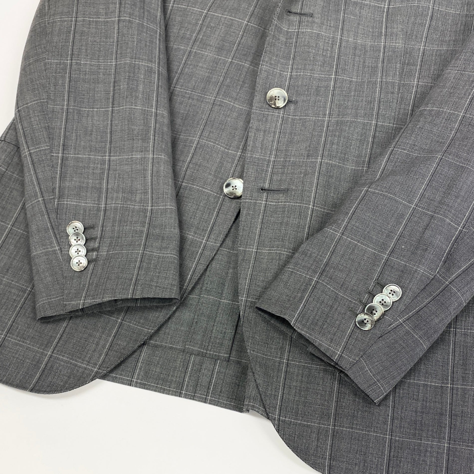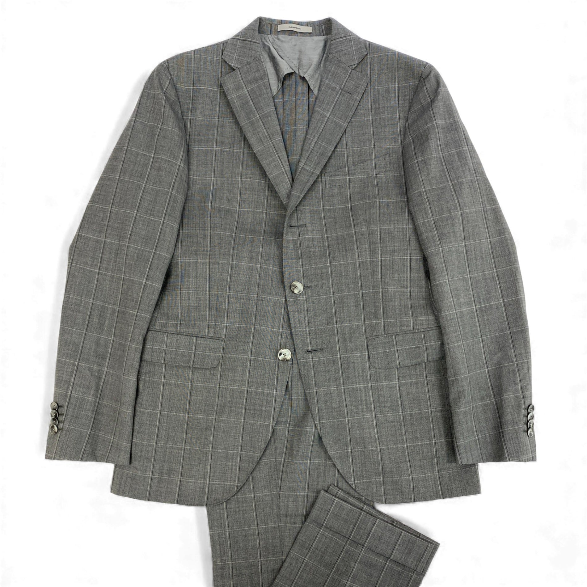 上品なライトグレーを基調に、繊細なウインドウペンチェックが入った BOGLIOLI(ボリオリ)のセットアップスーツです。生地はマットで滑らかなウール素材を使用し、柔らかな着心地と軽さによる自然なドレープ感が特徴。ジャケットは2ボタン仕様で、肩パッドを抑えた柔らかい仕立てがボリオリらしいエレガンスを演出します。ビジネスから食事会、ジャケパンスタイルまで幅広いシーンで活躍する、洗練された一着です。