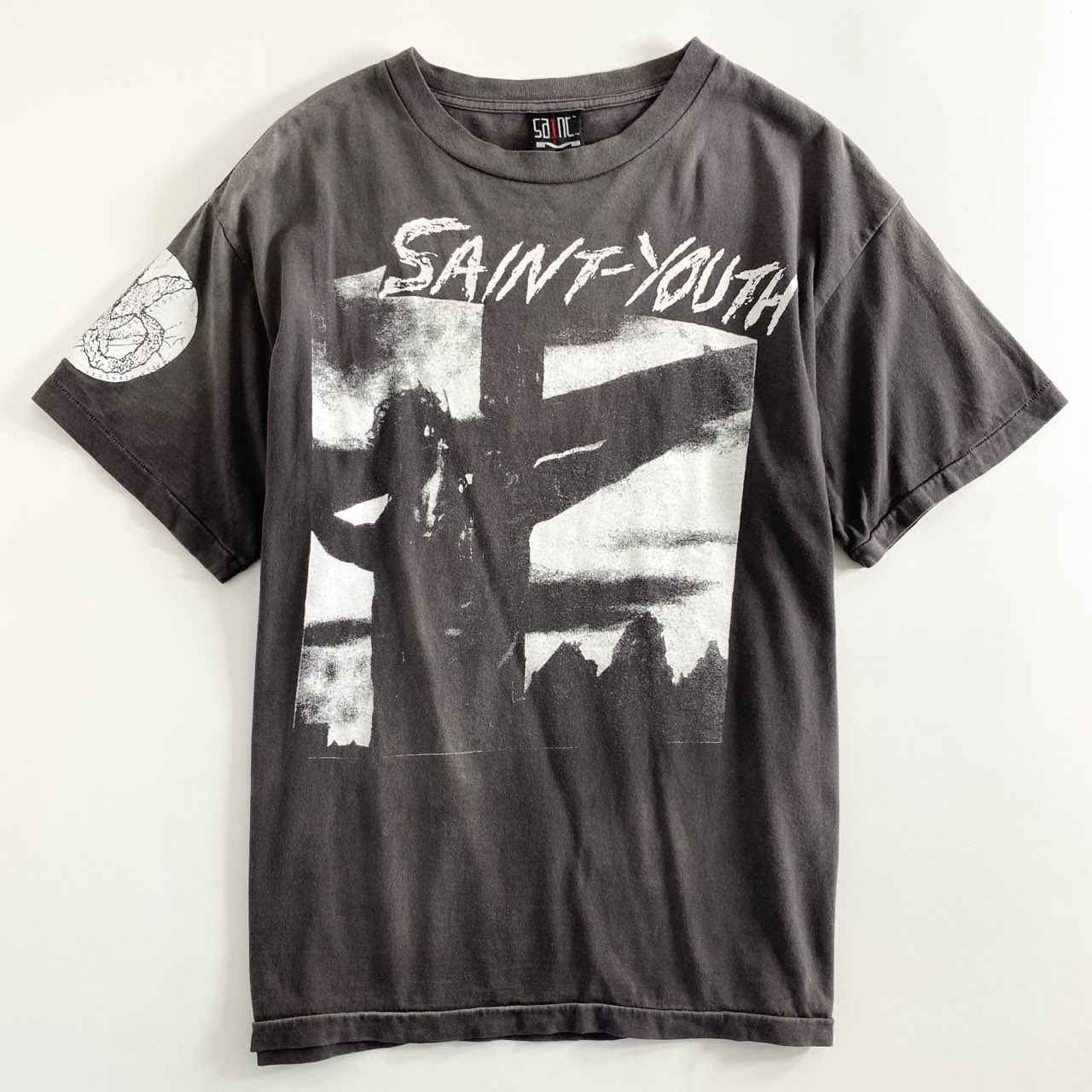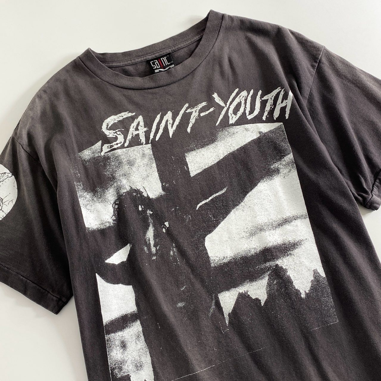 58e11 SAINT MICHAEL セントマイケル ヴィンテージ加工 MX6 グラフィックプリント Tシャツ カットソー SM-S22-0000-004 Lサイズ ブラック コットン