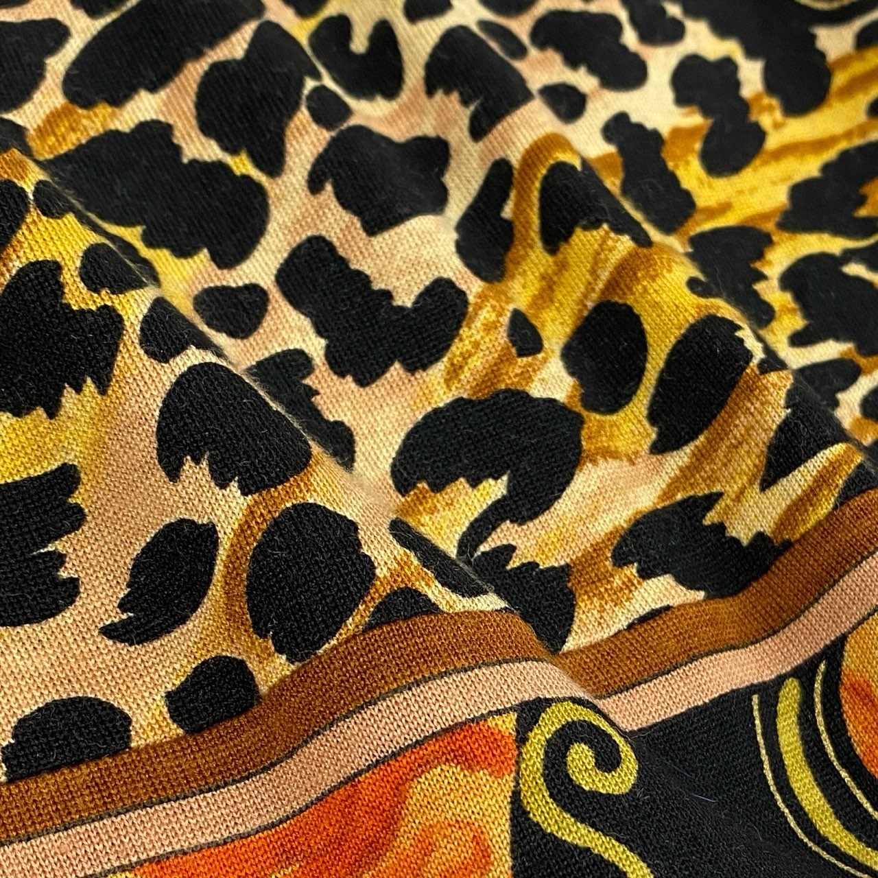 深みのあるブラックをベースに、ビビッドなオレンジ・イエロー・カーキのフローラル&アニマル柄を大胆に組み合わせた、LEONARDらしい存在感あふれるノーカラージャケットです。 ゴールド調の装飾ボタンがアクセントとなり、エレガントで高級感のある表情を演出します。 さらりとした上質素材で軽く羽織れ、シーズン通して使いやすい一着です。 シンプルなワンピースや黒パンツと合わせるだけで華やぐため、お出かけ・ディナー・美術館巡りなど 幅広いシーンで活躍します。