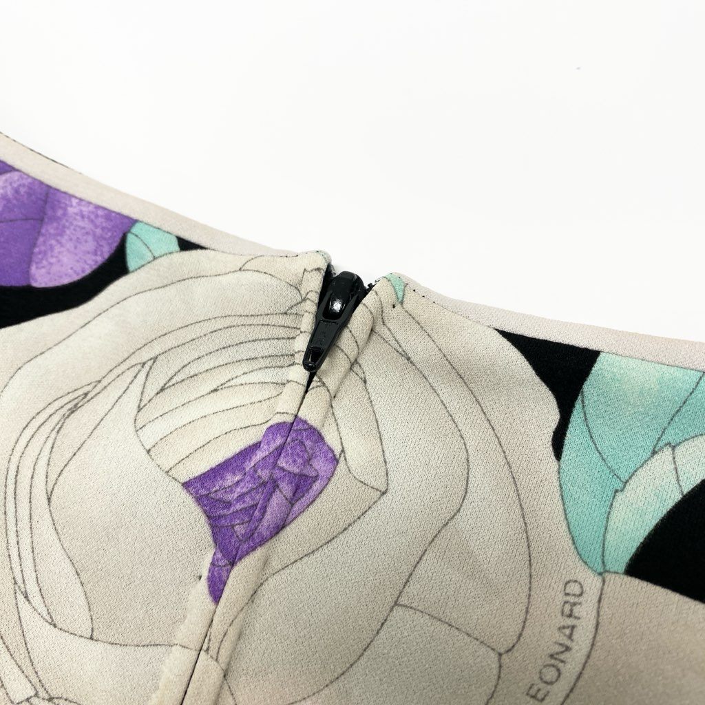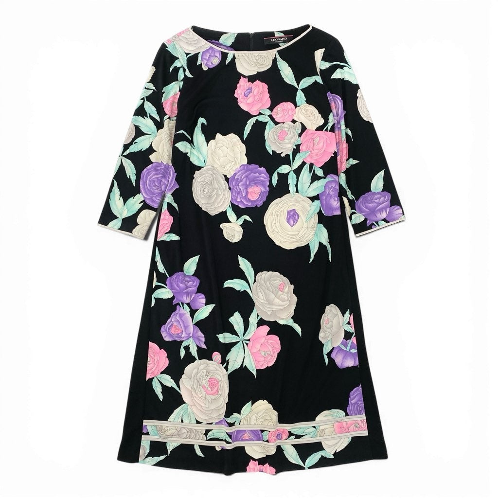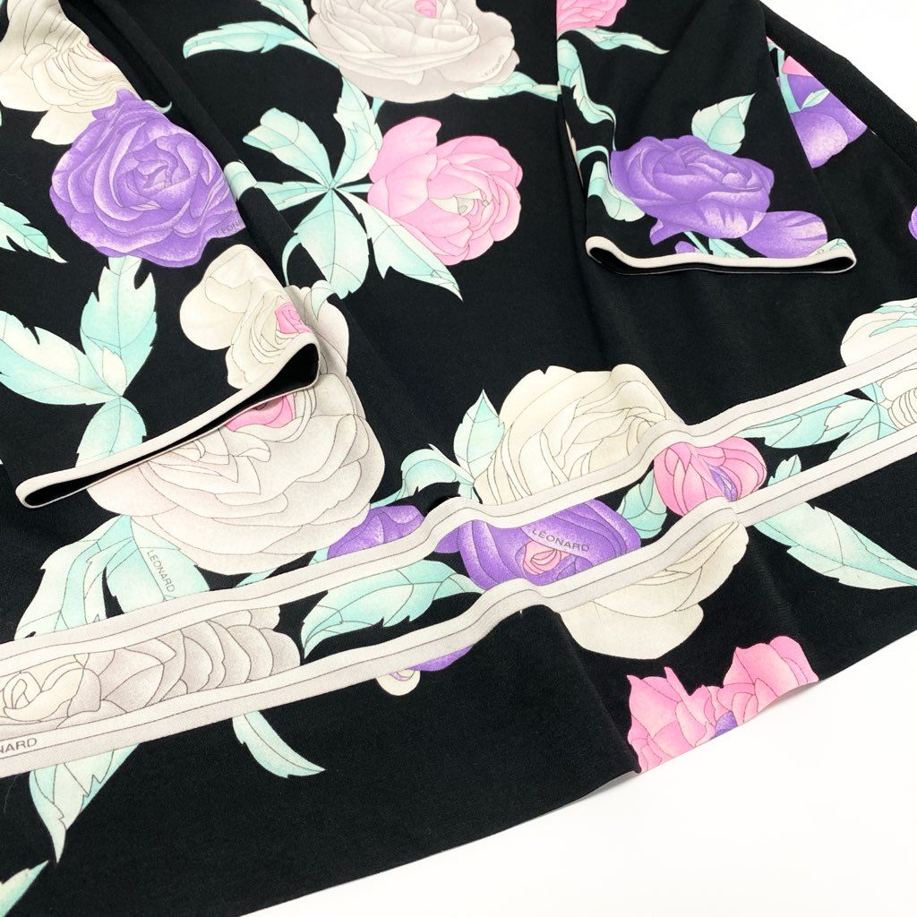 6l25 LEONARD レオナール カンカン素材 ロングワンピース 7分袖 美しい花柄プリント 40 マルチカラー レディースu02t