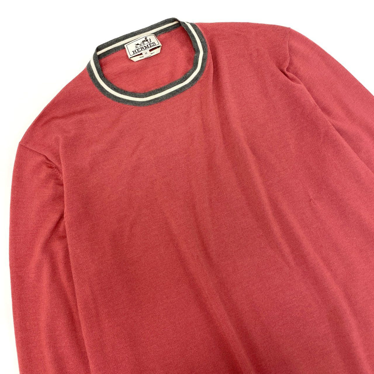 68L1 HERMES エルメス カシミヤ混紡 クルーネック ニット セーター トップス M ピンク系 カシミヤシルク メンズ イタリア製u02t