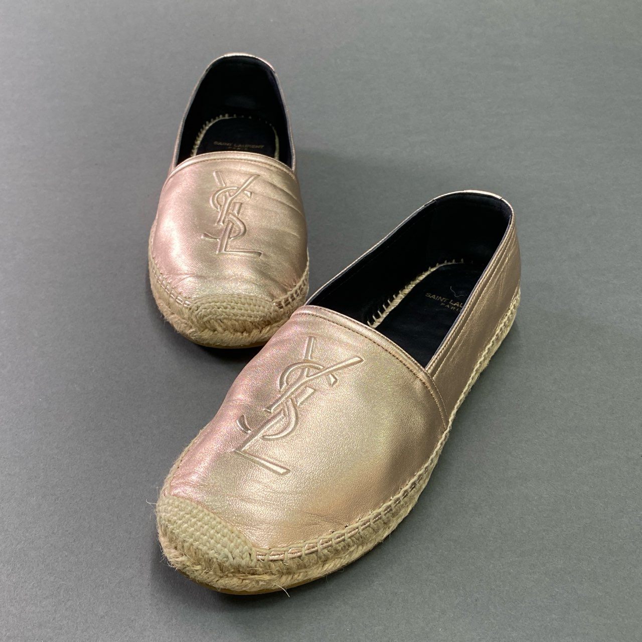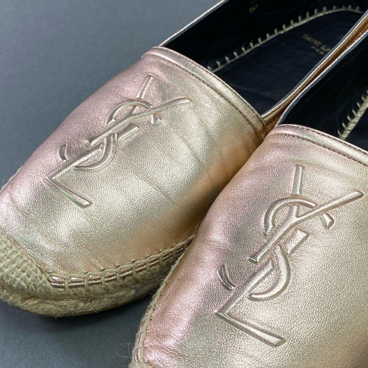 12c19 【日本未入荷】 SAINT LAURENT サンローラン YSL エスパドリーユ スリッポン シューズ 39 ピンク レザー メタリック フラットシューズ スペイン製 箱有り