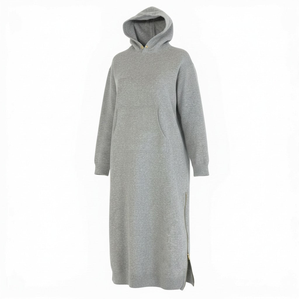 EVERYDAY I LIKE.のリラックス感を活かした、ロング丈のスウェットパーカーワンピースです。カラーは合わせやすいライト〜ミディアムグレーで、無地デザインが大人カジュアルな印象。素材はマットで柔らかなコットン100%の裏起毛で、肌当たりが良く保温性も◎。裾のジップディテールがさりげないアクセントとなり、ワンマイルウェアから休日のお出かけ、旅行時のリラックススタイルまで幅広く活躍します。