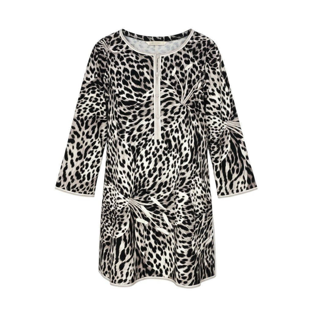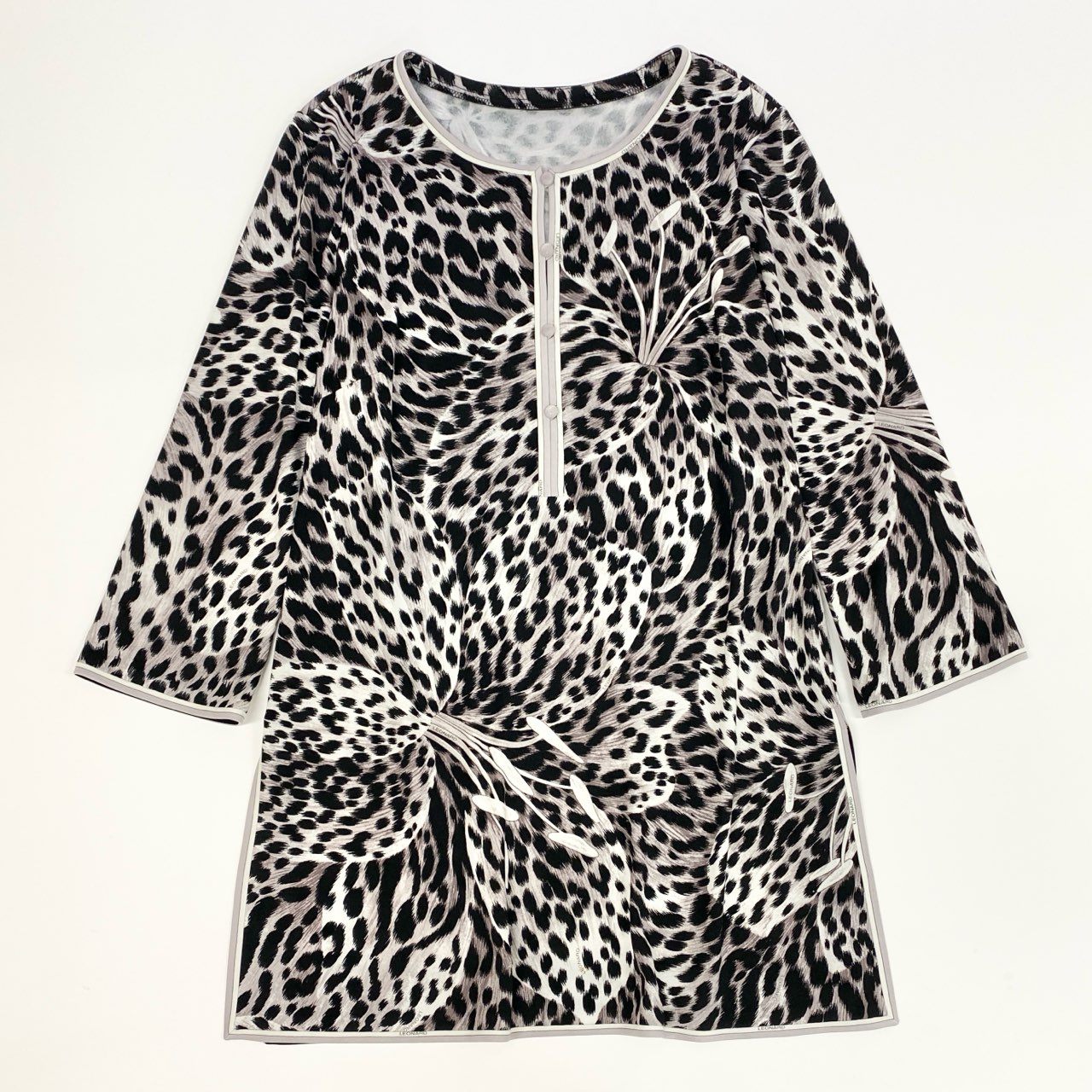 レオナールらしい、アート感のあるレオパード×フラワーパターンが存在感を放つチュニックワンピースです。軽やかで伸縮性のあるカンカン素材を使用し、シワになりにくく、長時間の着用や旅行にも最適。胸元のスリットデザインが、華やかさに加えて上品な抜け感を演出します。1枚で着るのはもちろん、細身のパンツやレギンスとのレイヤードもおすすめ。エレガントさと着心地の良さを兼ね備えた一着です。