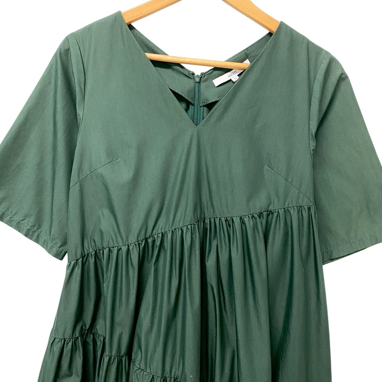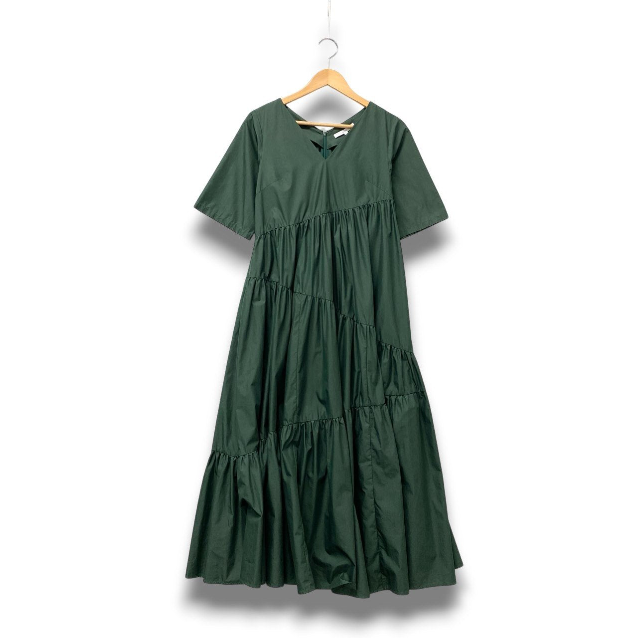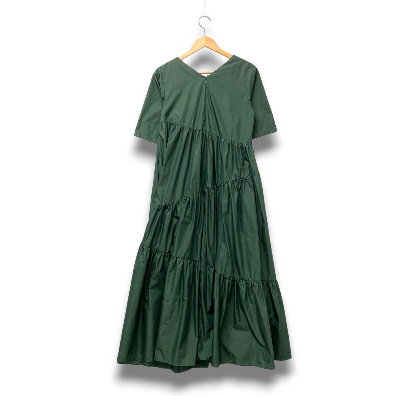 61c6 UN3D. アンスリード ティアード ロングワンピース 半袖ワンピース サイズ36 グリーン レディース ワンピース トップスk02i