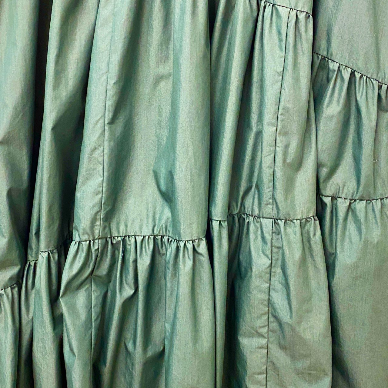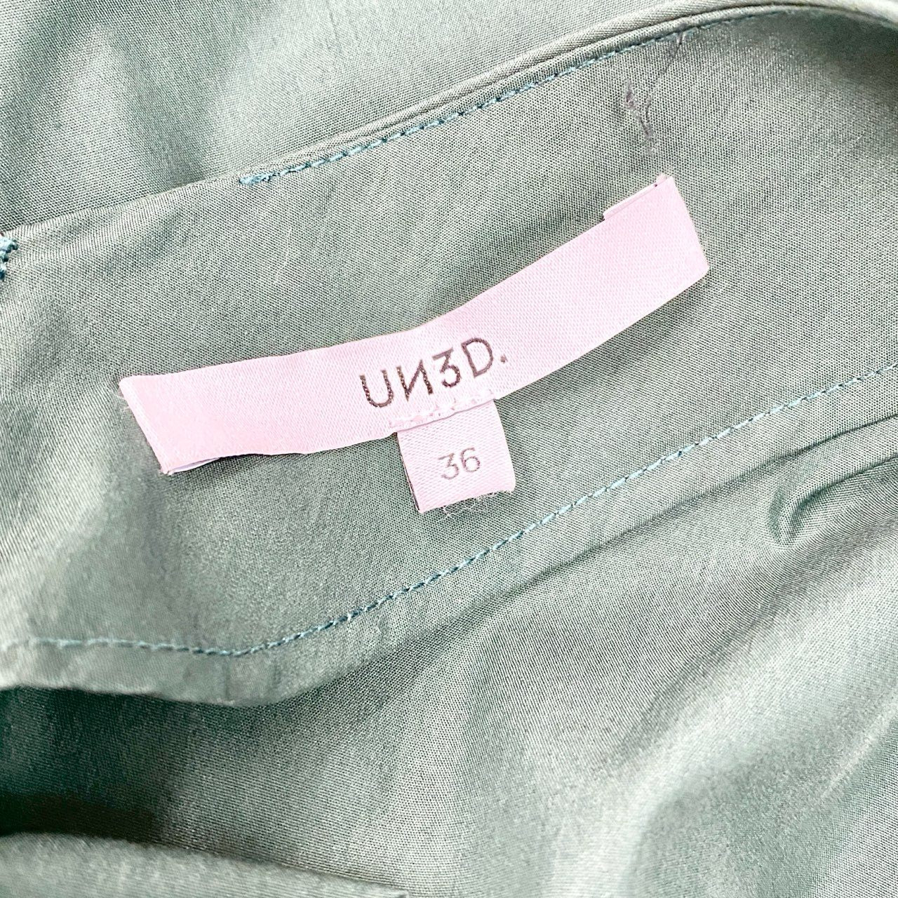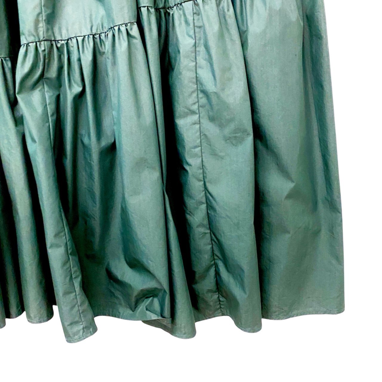 61c6 UN3D. アンスリード ティアード ロングワンピース 半袖ワンピース サイズ36 グリーン レディース ワンピース トップスk02i