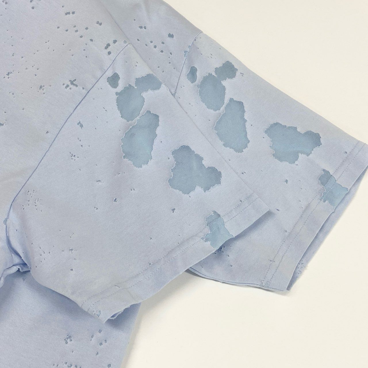 42a23《美品》 GIVENCHY ジバンシー デストロイ クラッシュ加工 半袖Tシャツ カットソー トップス M ライトブルー コットン メンズu02t