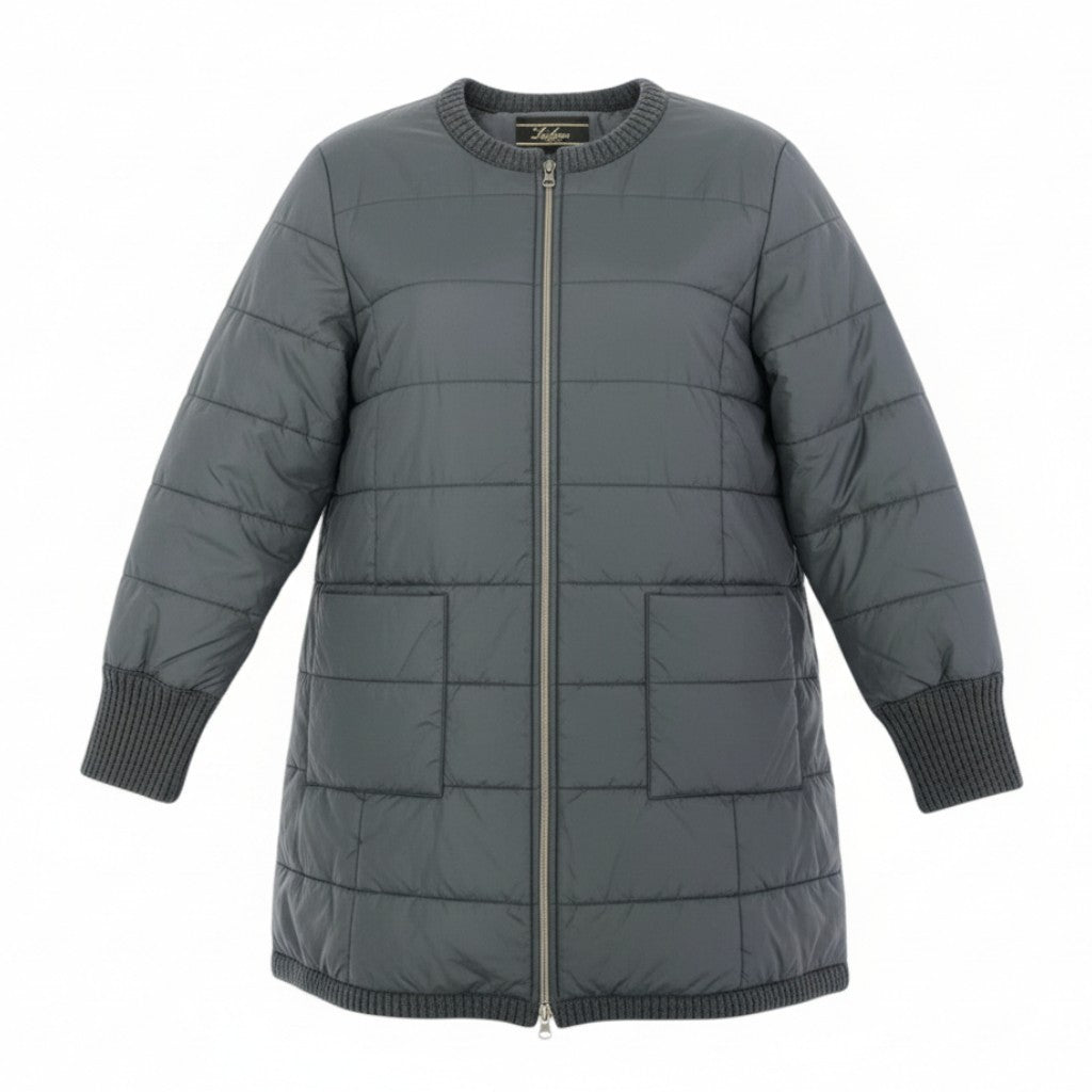81L15 【美品】Leilian レリアン 中綿キルティングジャケット ナイロンジャケット コート アウター 17+サイズ グレー レディースu02t