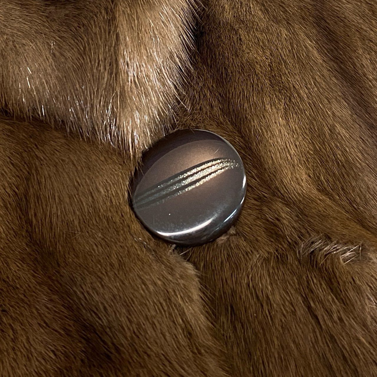 上質な艶を持つグレージュミンクが美しい、Surelle の最高級ミンクロングコートです。なめらかで密度の高い毛並みが均一に揃い、光の加減で深みのあるブラウン系の陰影が浮かぶラグジュアリーな一着。フロントには上品なボタンが施され、クラシックで落ち着いた印象に仕上がっています。ひざ上丈でバランスが良く、フォーマルシーンはもちろん、冬のお出かけや特別な日の装いにもおすすめです。