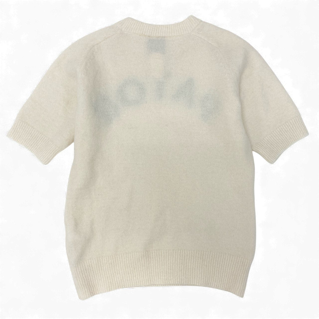 PATOUの半袖ジャガードニットで、ホワイトの柔らかなアルパカ混素材が優しい雰囲気を演出します。フロントにはブランドロゴを大胆にあしらい、シンプルながら存在感のあるデザインに仕上がっています。軽くふんわりとした肌触りで、シーズンの立ち上がりから春先までロングシーズン活躍。短丈シルエットのため、スカートやハイウエストパンツと合わせるだけでバランス良くコーデが完成します。上質さと可愛らしさを両立した人気アイテムです。