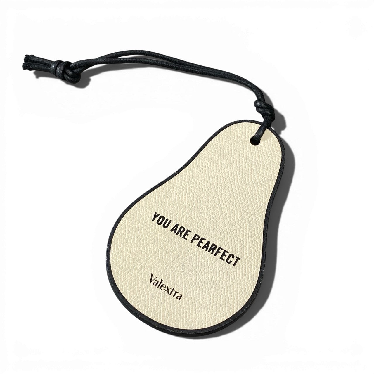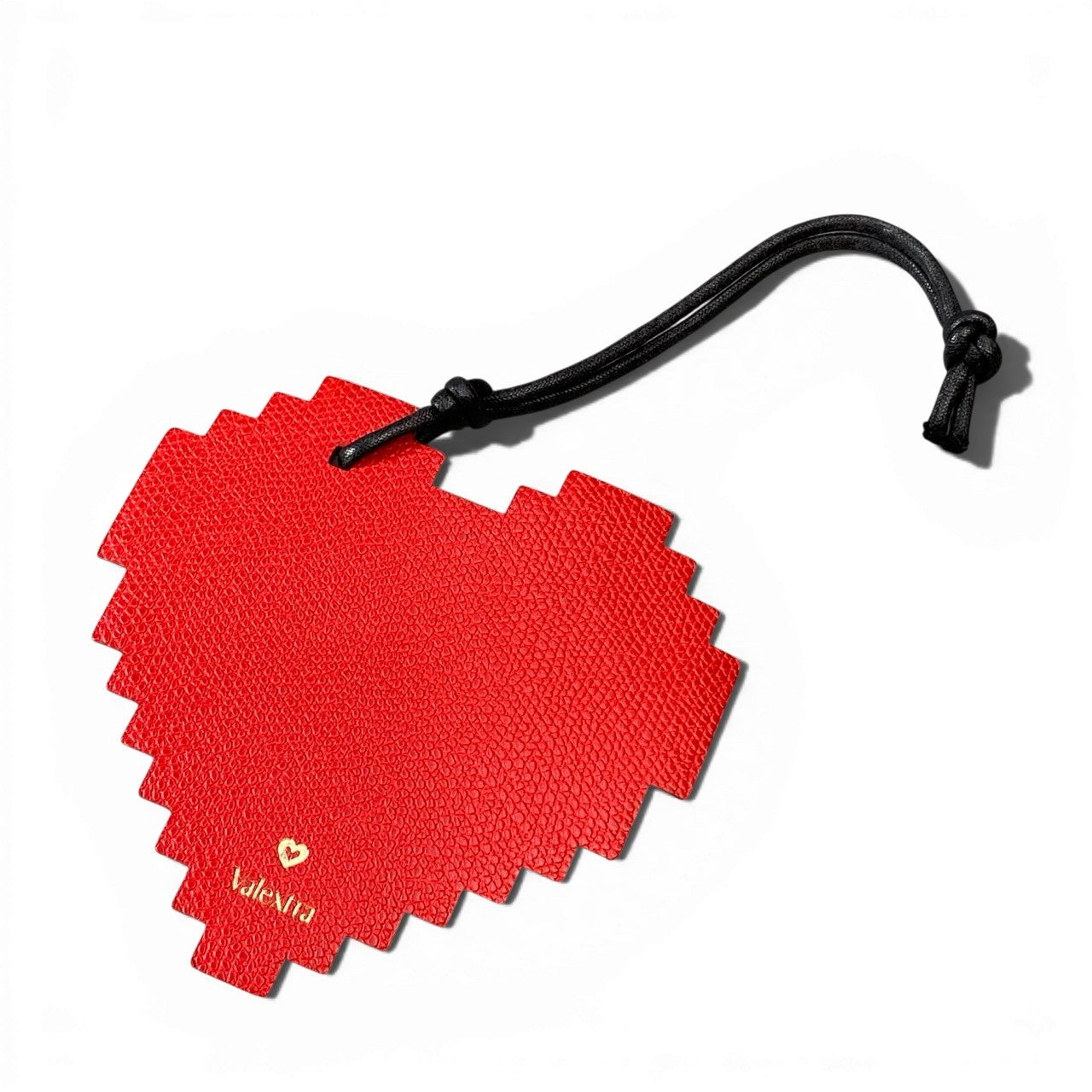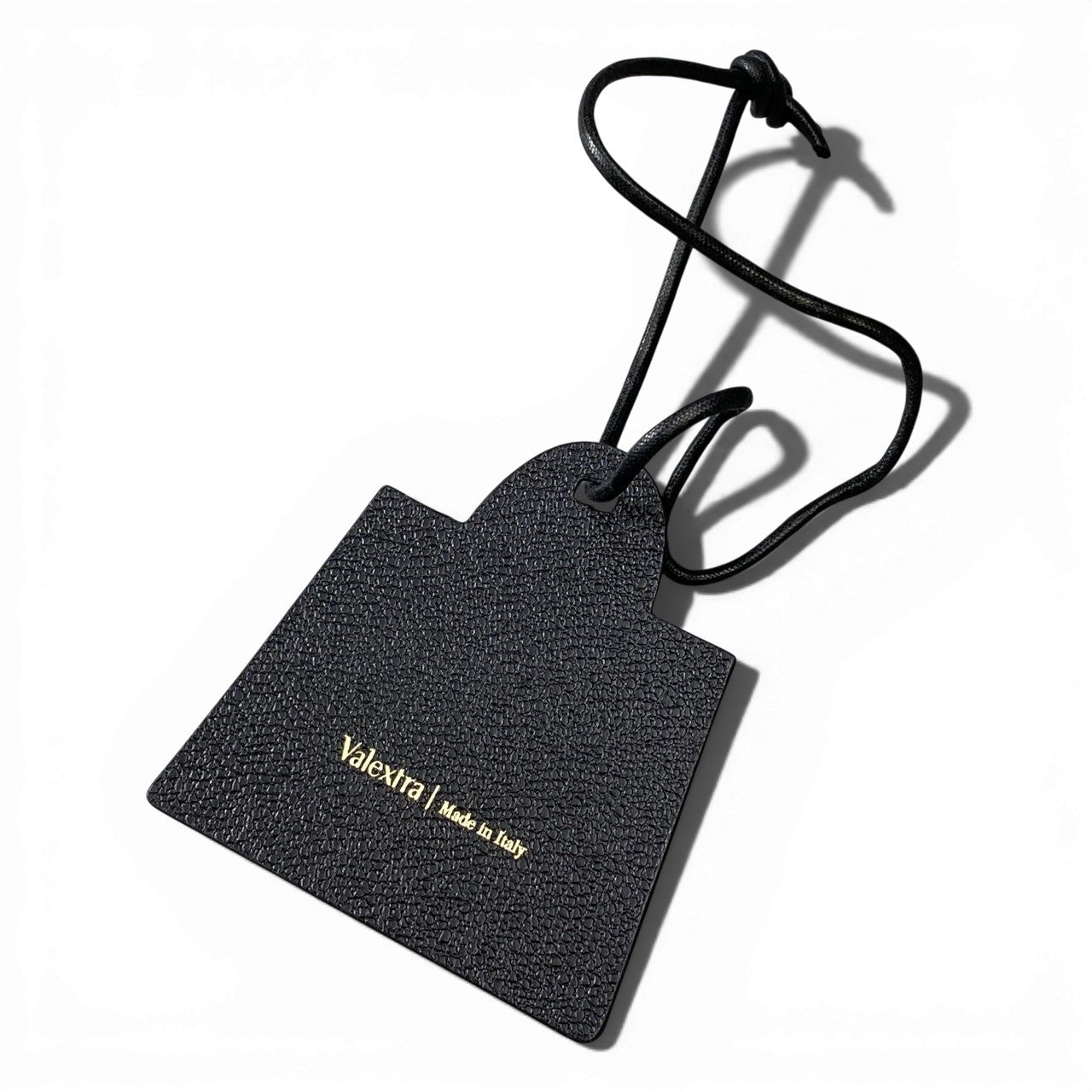 アップルグリーン、レッド、アイボリーを基調に、ハート(ピクセル調)やミニバッグモチーフを組み合わせた遊び心のあるチャームです。シボ感のあるマットレザーに、ブラックの縁取りとコードが全体を引き締めます。手書き風のロゴプレートがアクセントになり、バッグに付けるだけで表情が変わります。**Valextra**らしい上質素材とミニマル×ポップなデザインで、ギフトにもおすすめです。
