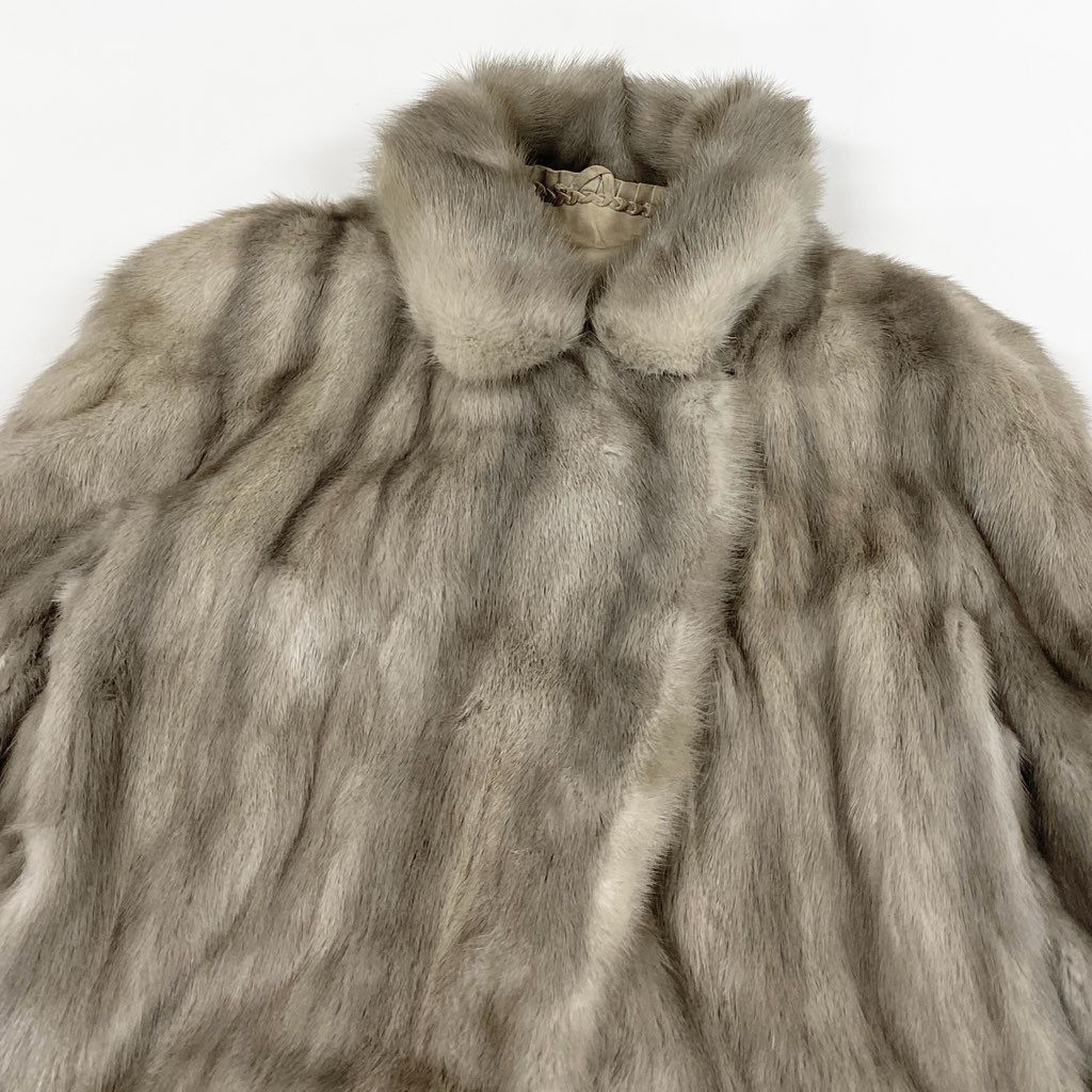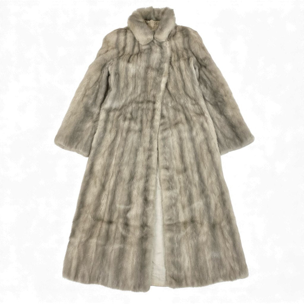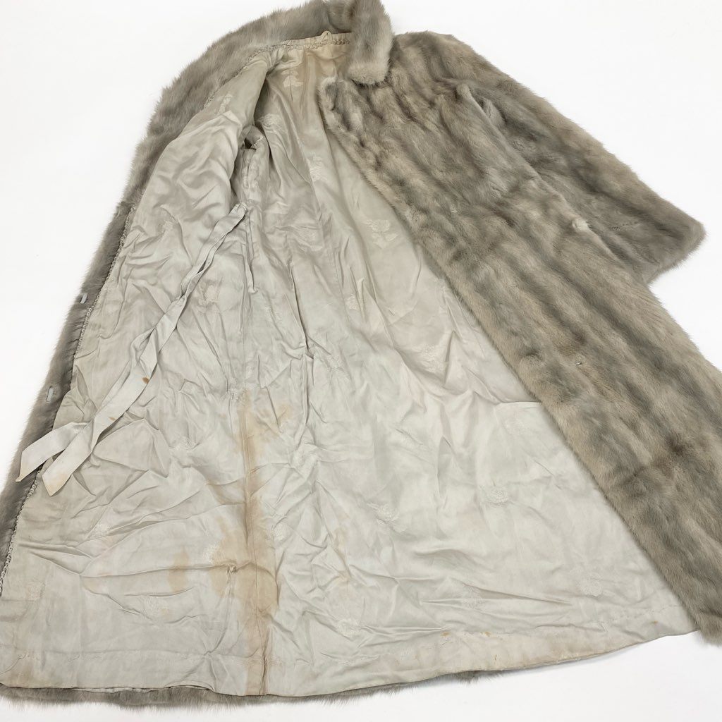 71L15 サファイアミンク 丈110cm 超ロングコート サイズ11号 シルバーグレー 本毛皮 MINK FUR ポケット有t18r