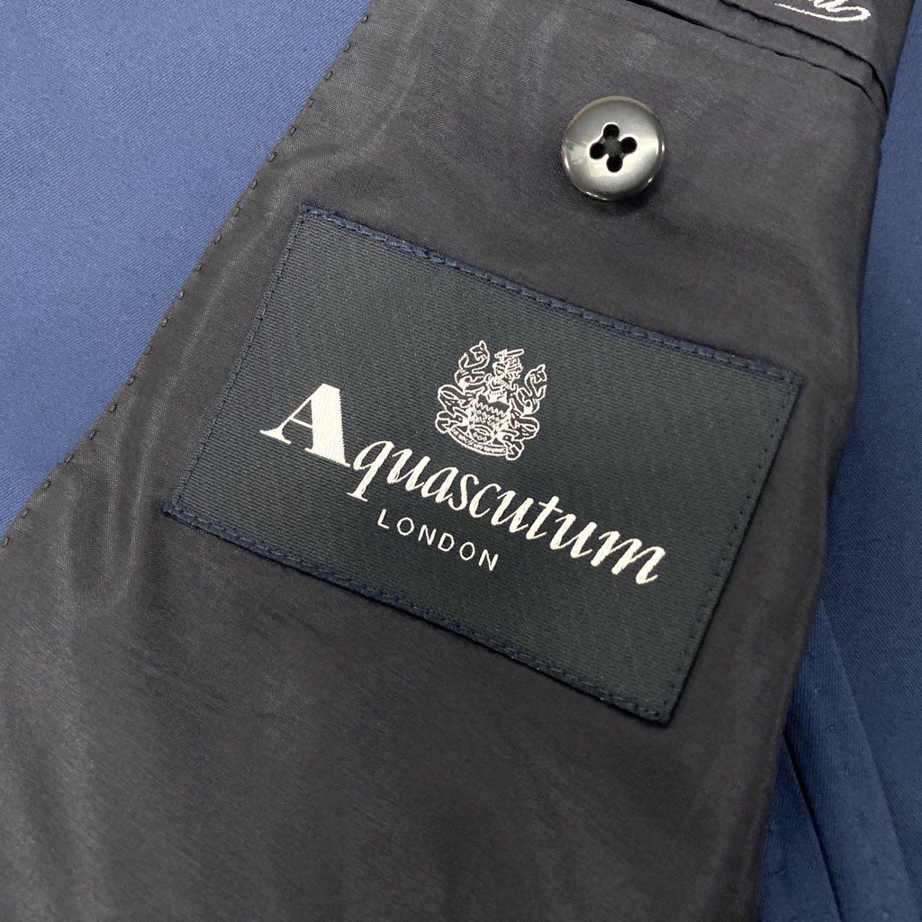 66a12 Aquascutum アクアスキュータム テーラードジャケット 背抜き シングル 2B フォーマル 無地 メンズ 紳士服 90A4 ネイビー コットン100%u02t