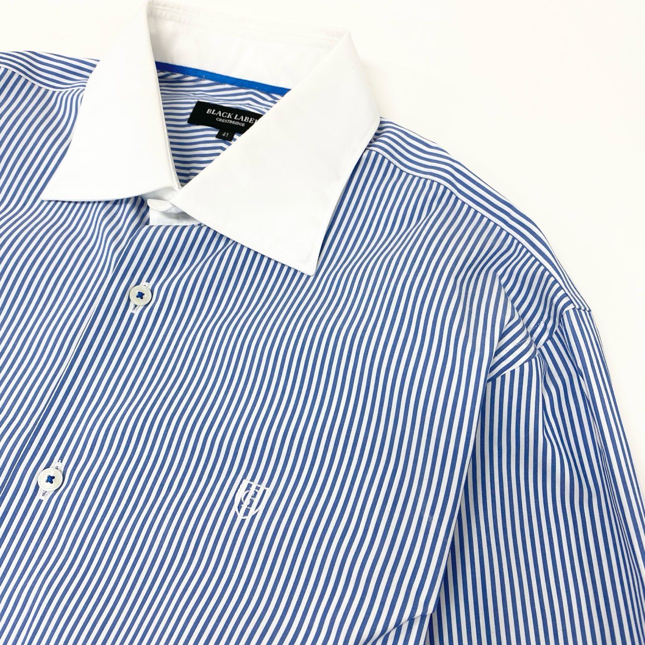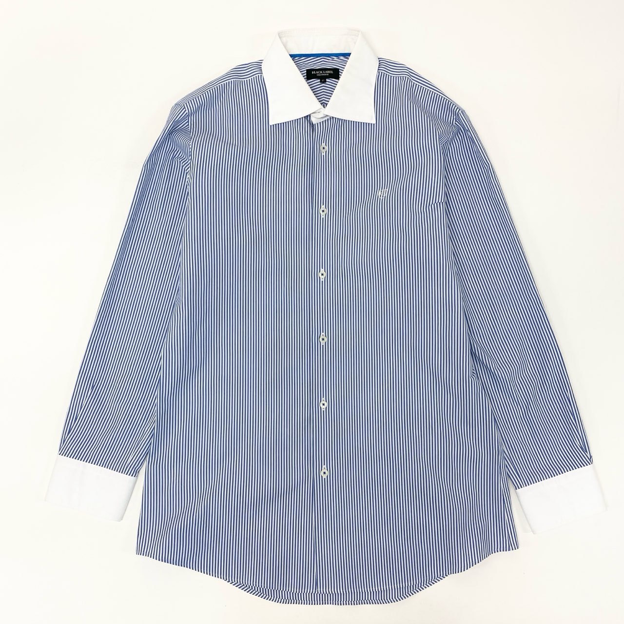 81j8 BLACK LABEL CRESTBRIDGE ブラックレーベル クレストブリッジ 長袖シャツ ストライプシャツ 胸元ワンポイント刺繍 51L10-505-26 41サイズ ブルー ホワイト メンズo07t