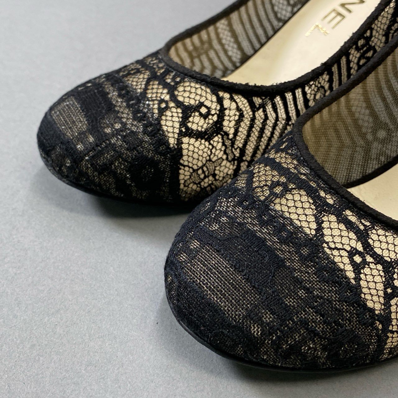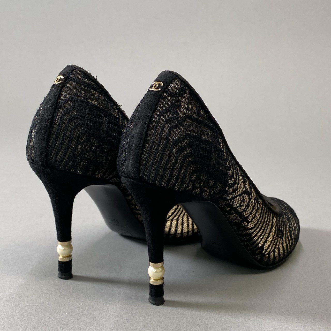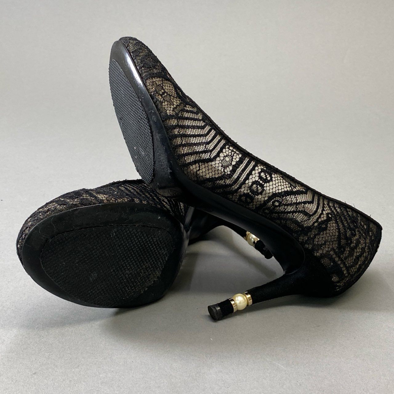 4j3 CHANEL シャネル パール装飾ヒール レースパンプス 35 ブラック ココマーク シューズ 保存袋有t18r