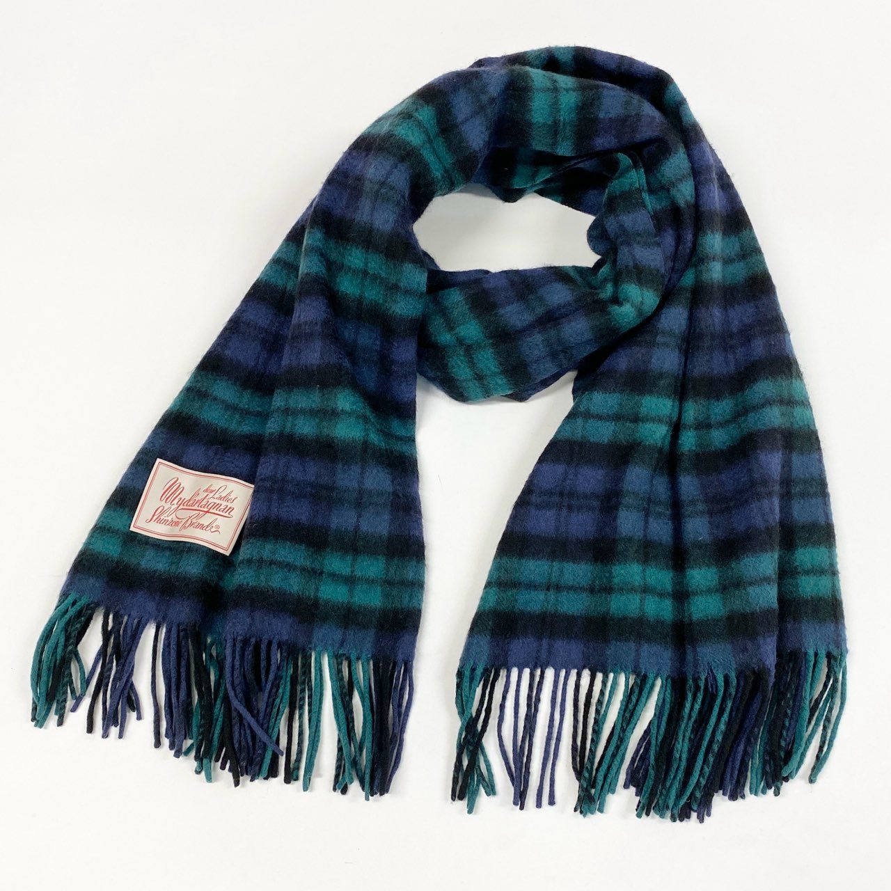 l15 SHINZONE シンゾーン マイダルタニアン 大判 カシミヤマフラー フリンジストール グリーン チェック カシミア レディース 女性用u02t