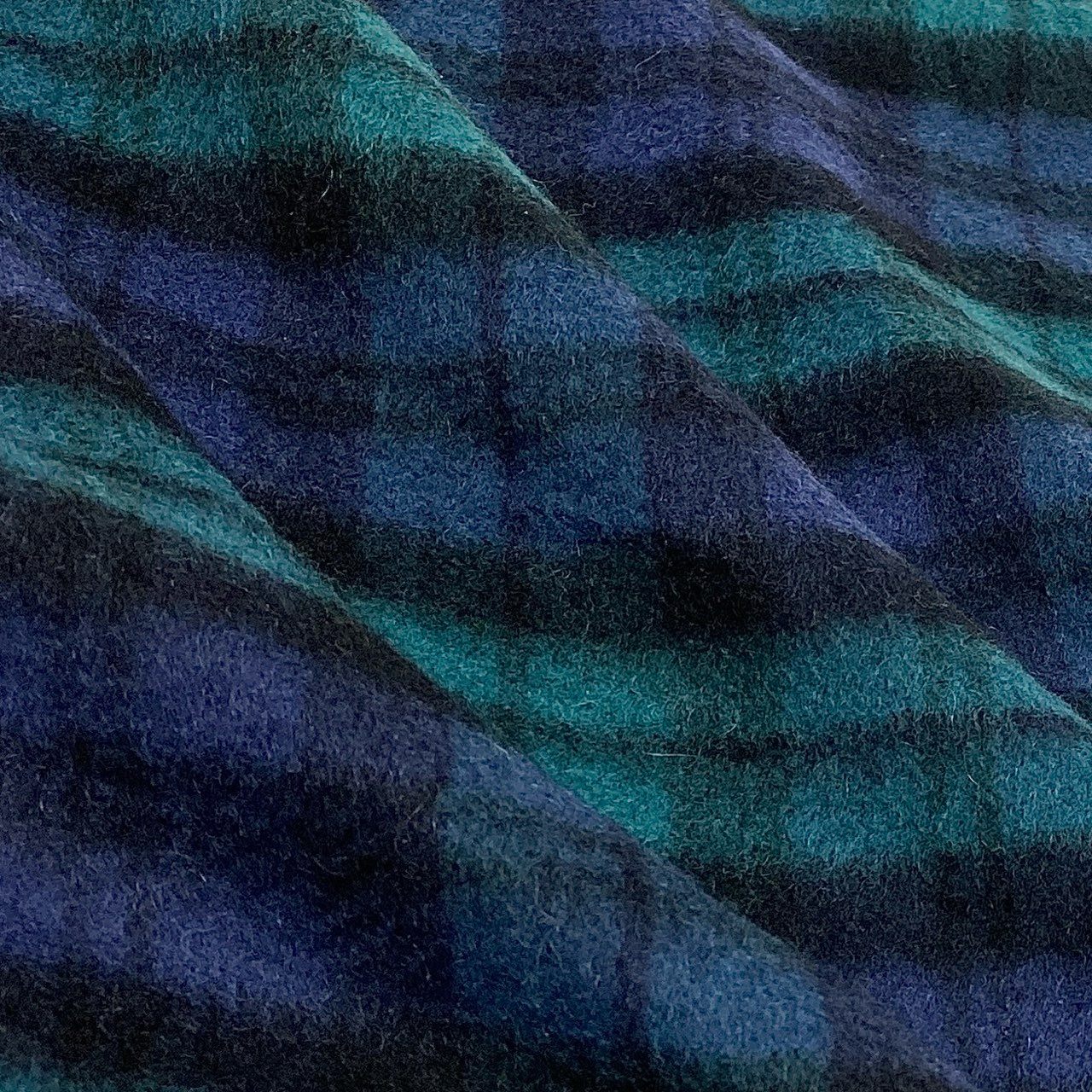 深みのあるネイビーとグリーンを基調としたクラシックなチェック柄が印象的な、大判カシミヤマフラーです。素材は毛足のある上質なカシミヤで、柔らかく軽やかながら高い保温性を備えています。フリンジ仕様がさりげないアクセントとなり、カジュアルからきれいめスタイルまで幅広くマッチします。秋冬のデイリー使いはもちろん、通勤や旅行時の防寒アイテムとしても活躍する一枚です。