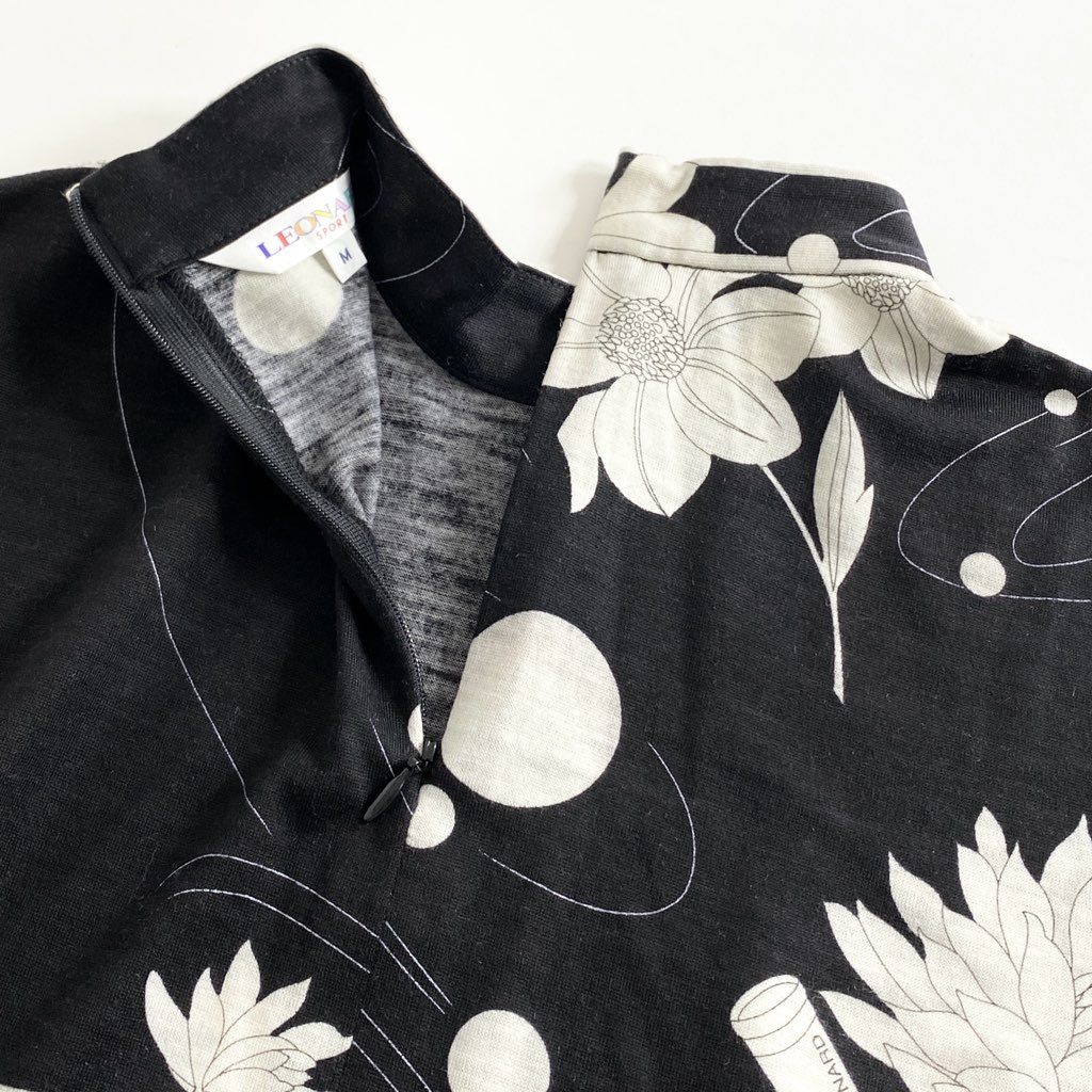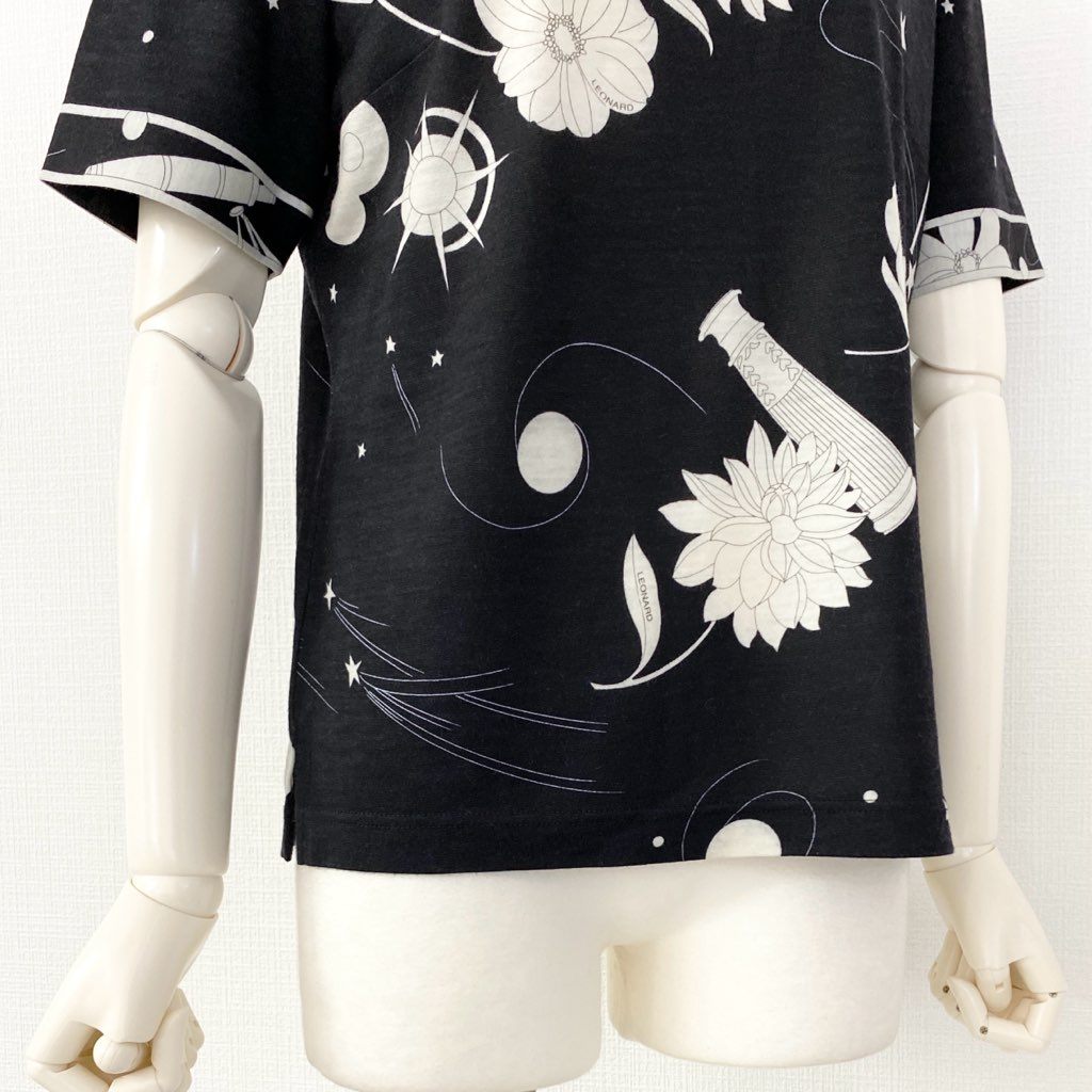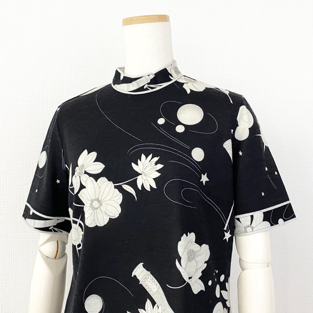 59e20 LEONARD SPORT レオナール スポーツ ハイゲージ 半袖ニット セーター 美しい花柄 サイズM ブラック ウール レディース 日本製 秋