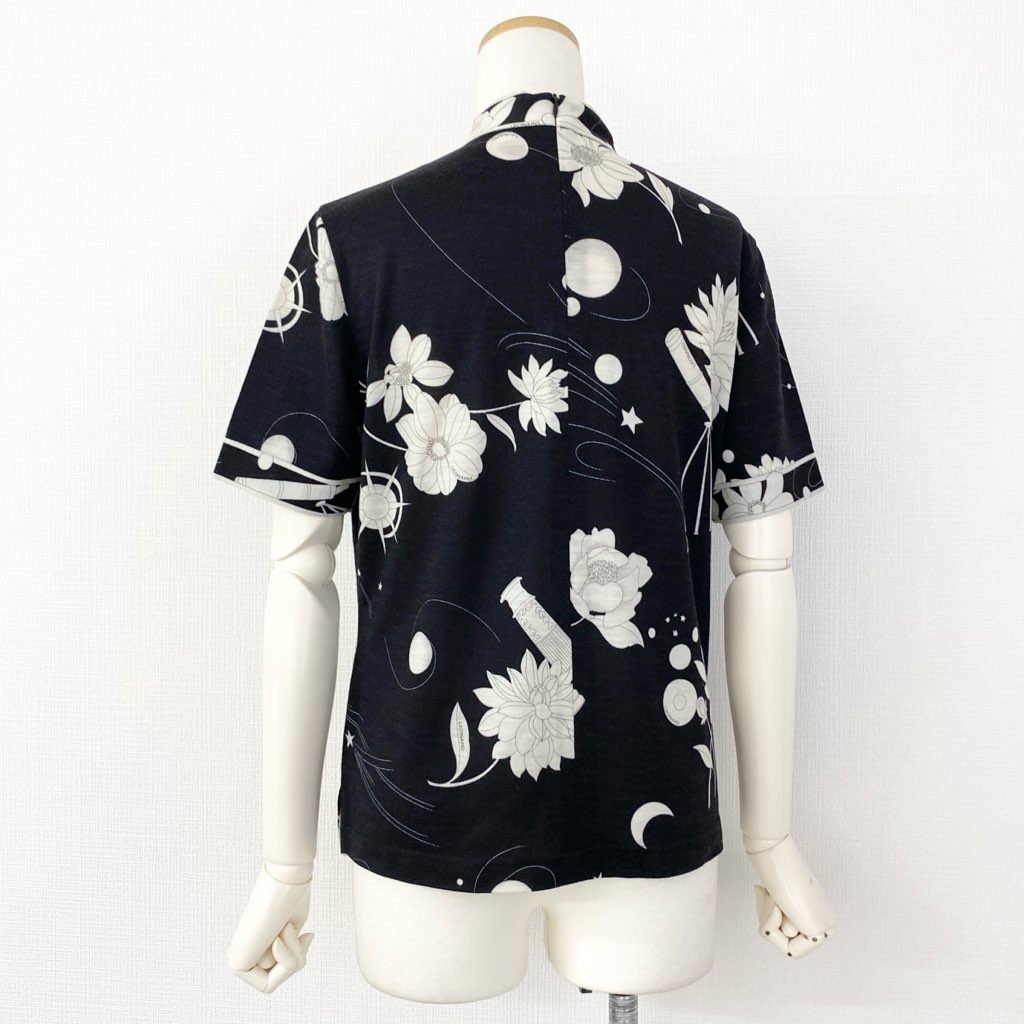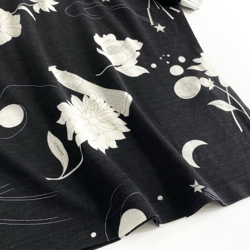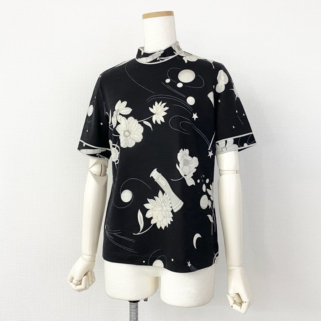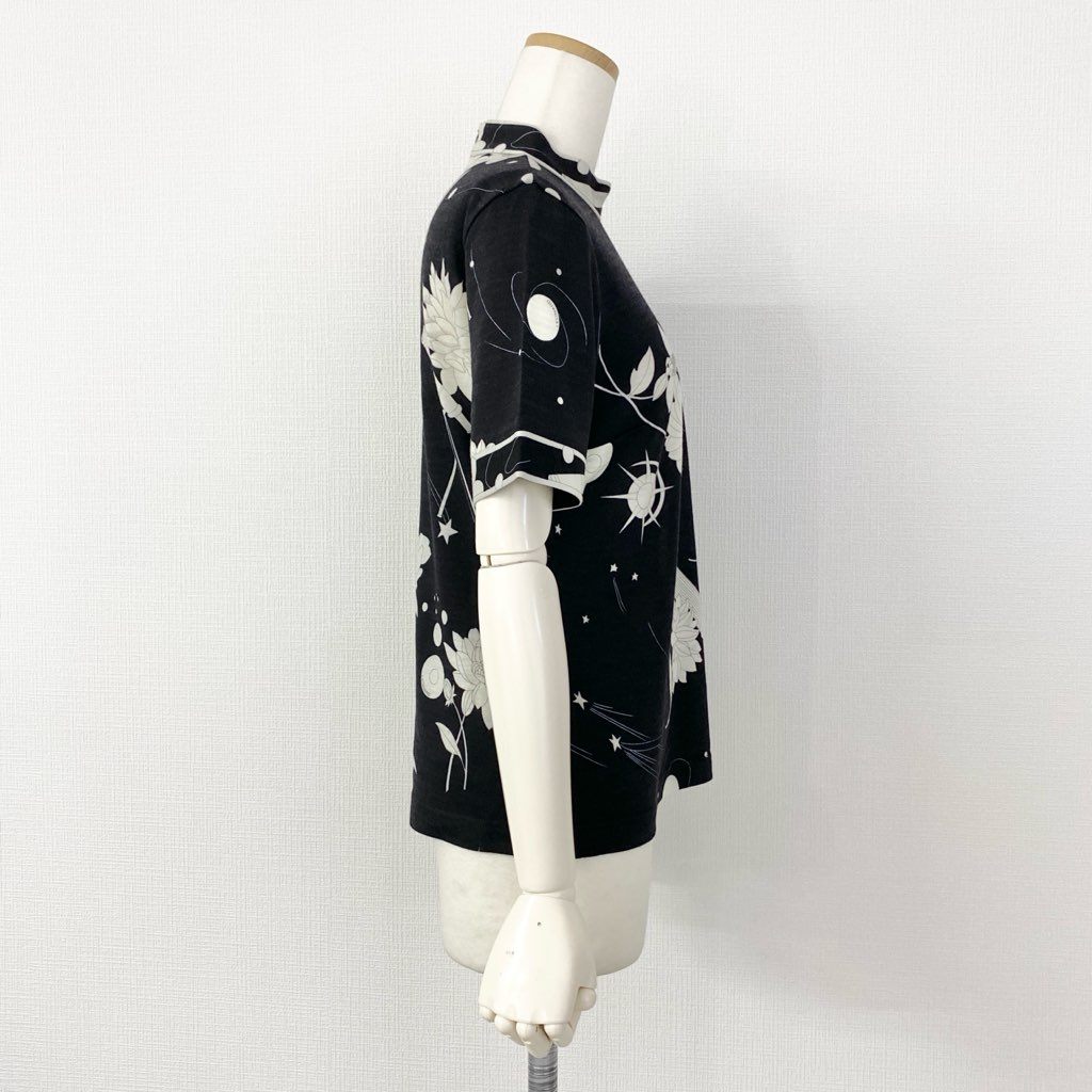 59e20 LEONARD SPORT レオナール スポーツ ハイゲージ 半袖ニット セーター 美しい花柄 サイズM ブラック ウール レディース 日本製 秋