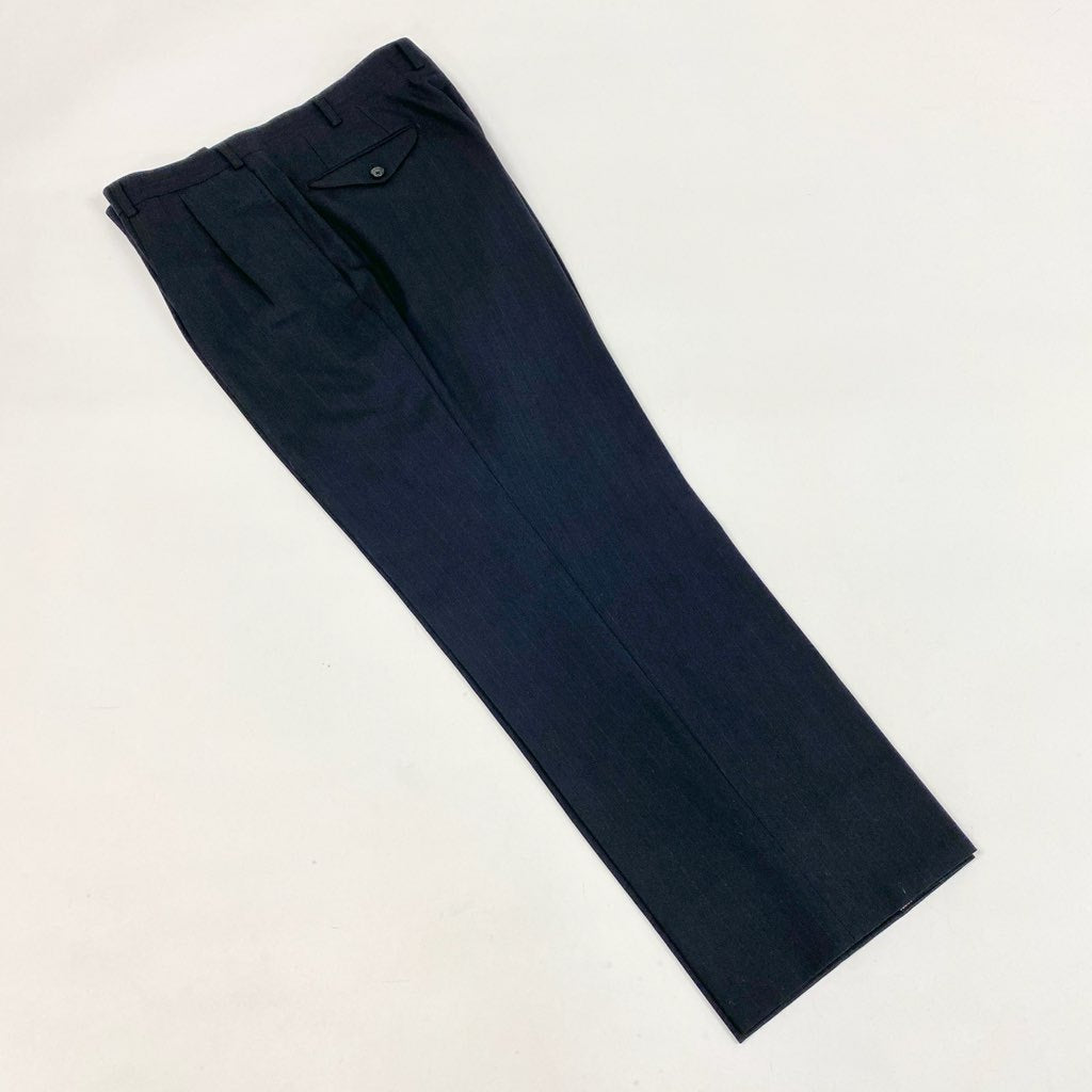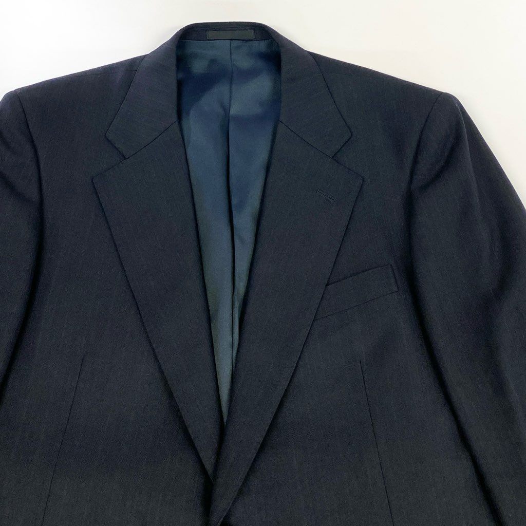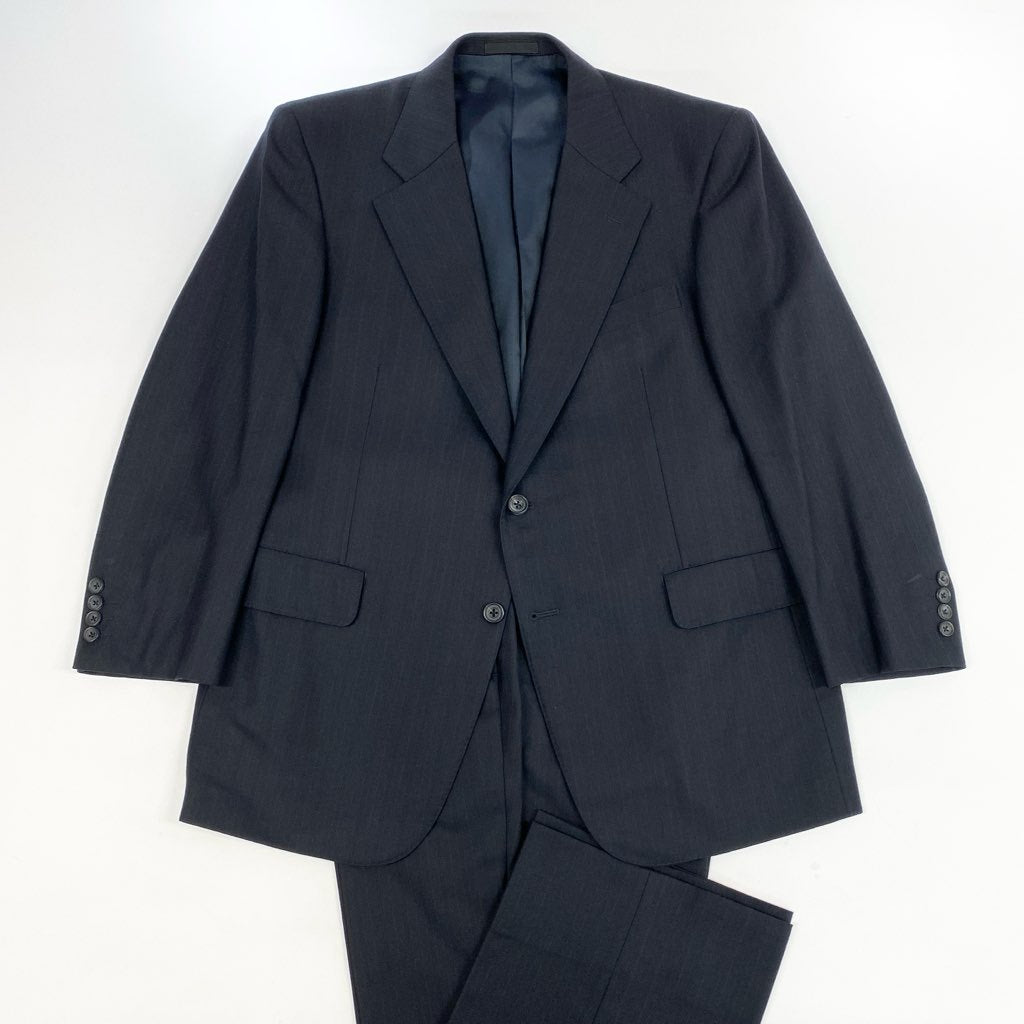 落ち着いたブラックが端正な印象の、Burberrysのスーツセットアップ。マットで滑らかなウール系素材感に、クラシックなテーラリングが映えます。シングルブレスト/ラペルの立体感/袖口ボタンなど、正統派ディテールが魅力。体格のある方でも着やすい設計で、ビジネスから式典、改まった会食まで幅広く活躍。流行に左右されない、長く愛用できる一着です。